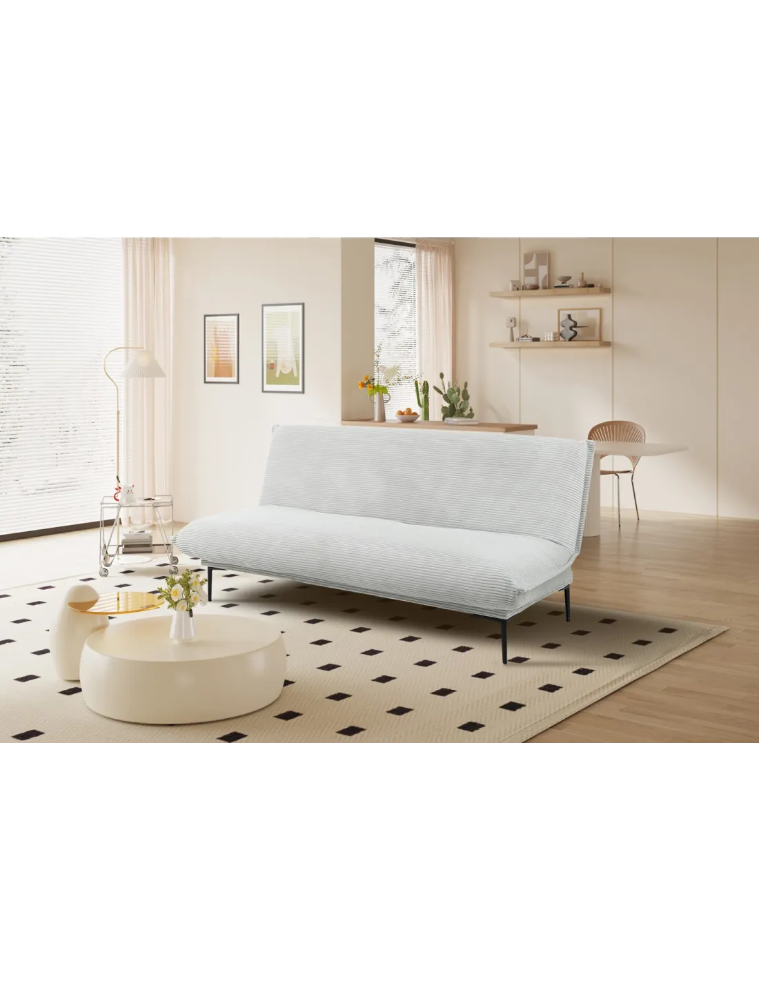Canapé-Lit Style Scandinave avec Accoudoirs Fins - Élégance et Confort en Tissu Beige