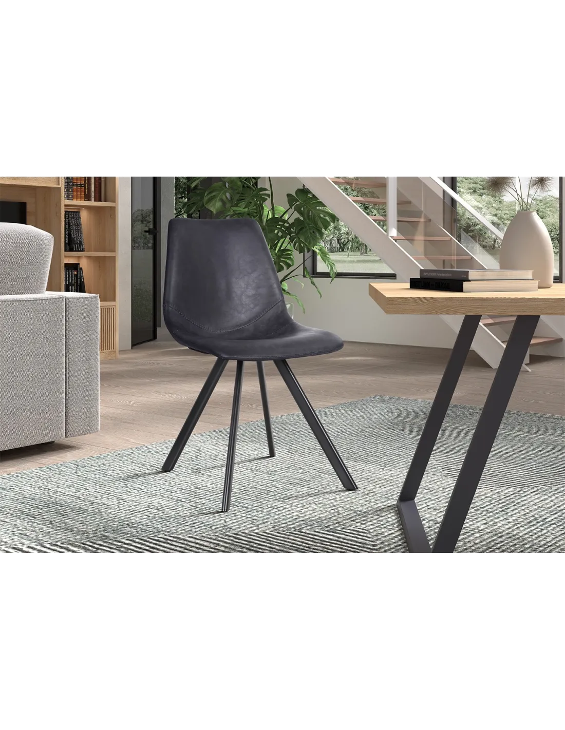 Son design épuré, sublimé par ses pieds métalliques noirs, combine modernité, confort et durabilité pour s’intégrer harmonieusement dans tout type d’espace — salle à manger, bureau ou coin lecture.
