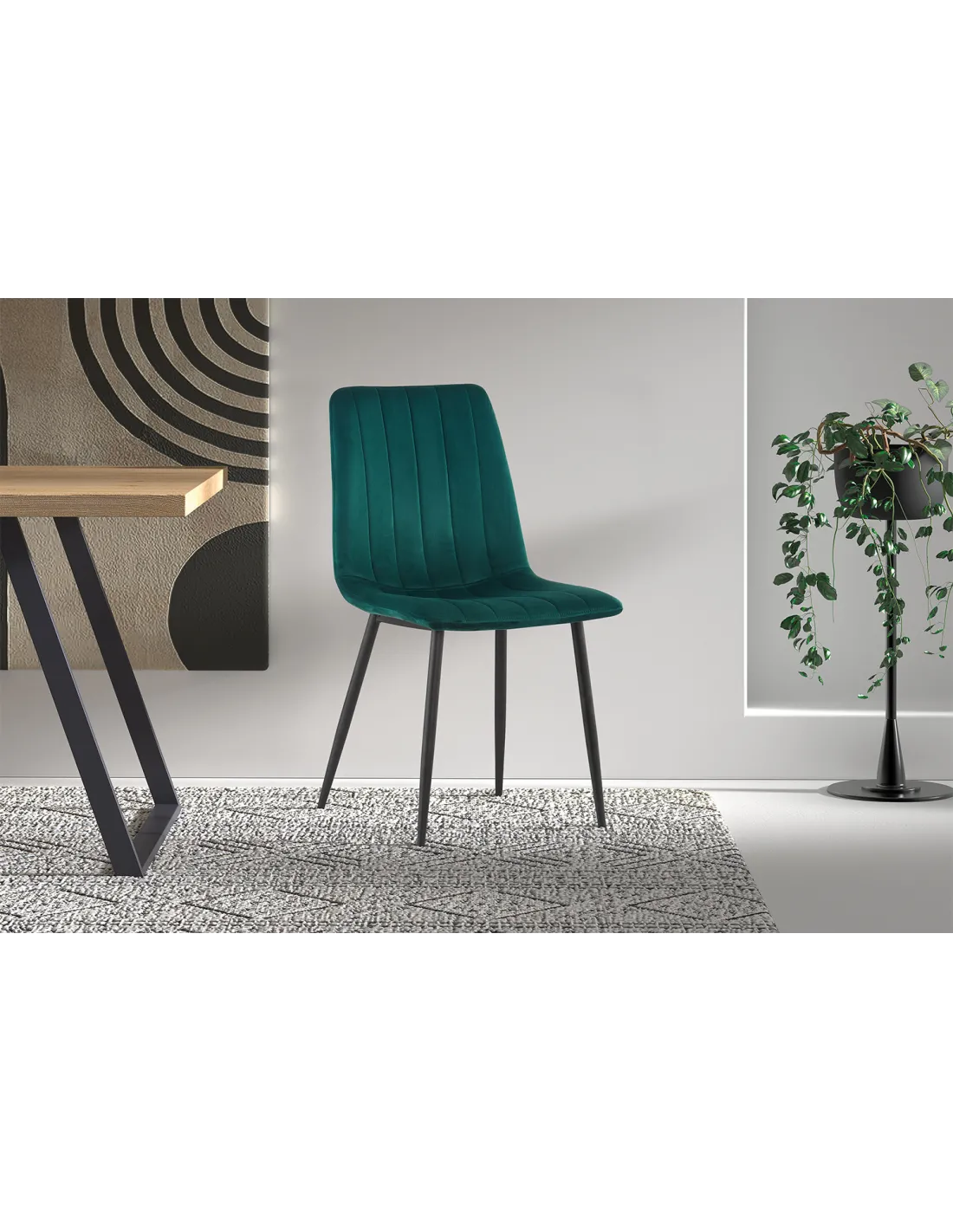 La chaise Willis séduit par son assise confortable et son dossier enveloppant, offrant un excellent maintien du dos. Le revêtement en velours synthétique apporte une sensation douce au toucher tout en garantissant une bonne résistance à l’usure et une excellente tenue des couleurs dans le temps.