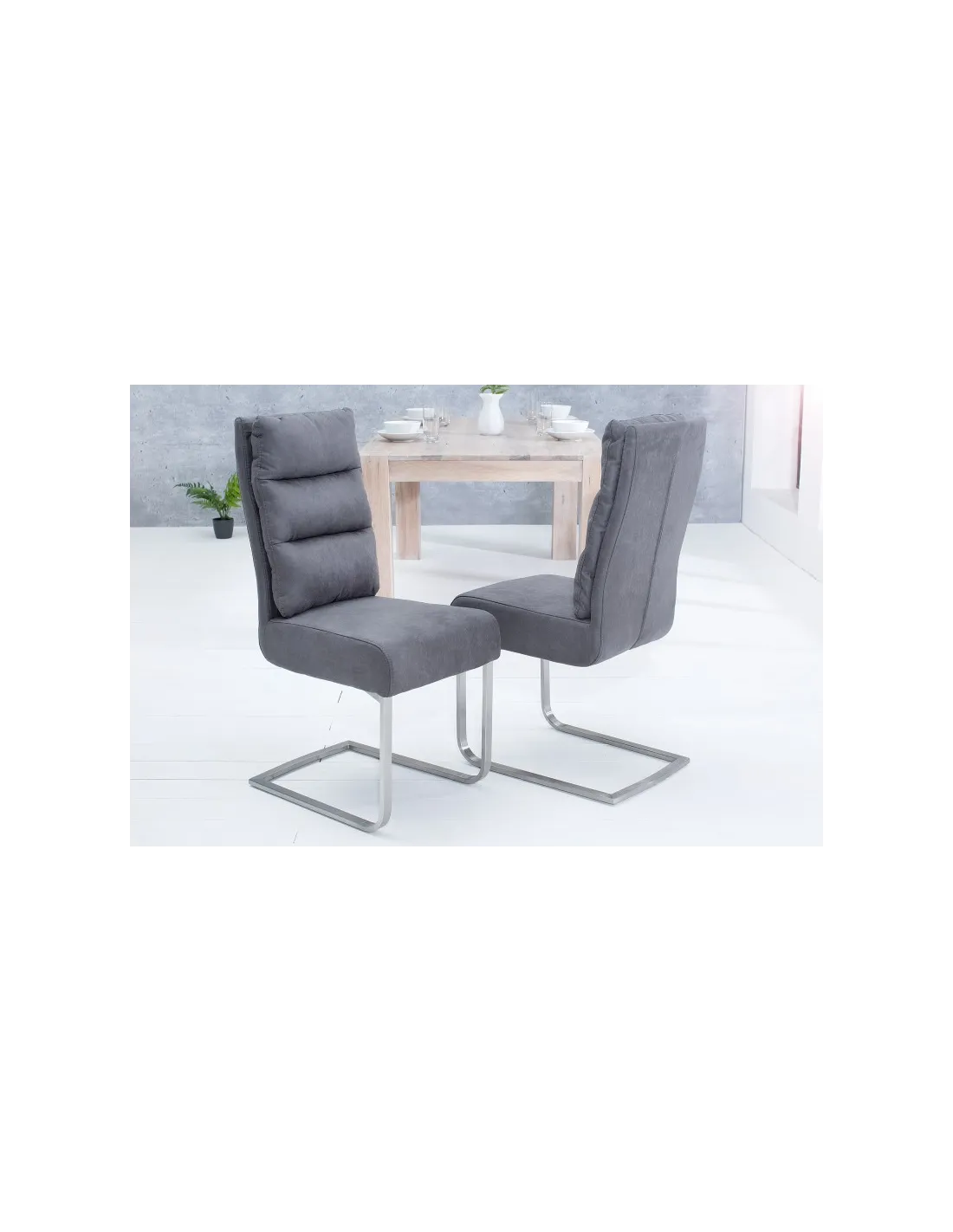 Commandez dès maintenant : Transformez votre intérieur avec cette chaise rétro en microfibre gris et cadre en inox brossé. Alliant confort et esthétique, elle est prête à devenir la pièce maîtresse de votre décoration. Commandez dès aujourd'hui et apportez une touche de luxe et de sophistication à votre maison.