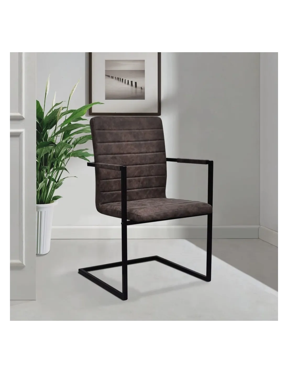 Ces chaises cantilever de salle à manger ont un aspect élégant qui convient parfaitement à un intérieur moderne. Elles deviendront le point central de votre salle à manger à la maison ou ajouteront une touche élégante à votre décor de bureau. Le siège épaississement rembourré de mousse offrira le plus grand confort d'assise et un excellent soutien pour votre dos. Le siège côtelé est recouvert de cuir synthétique résistant et durable, ce qui donne aux chaises un aspect luxueux. Cette chaise de salle à manger est non seulement légère mais aussi robuste grâce à sa structure en acier tubulaire solide. L'assemblage est vraiment facile. La livraison comprend 2 chaises de salle à manger.