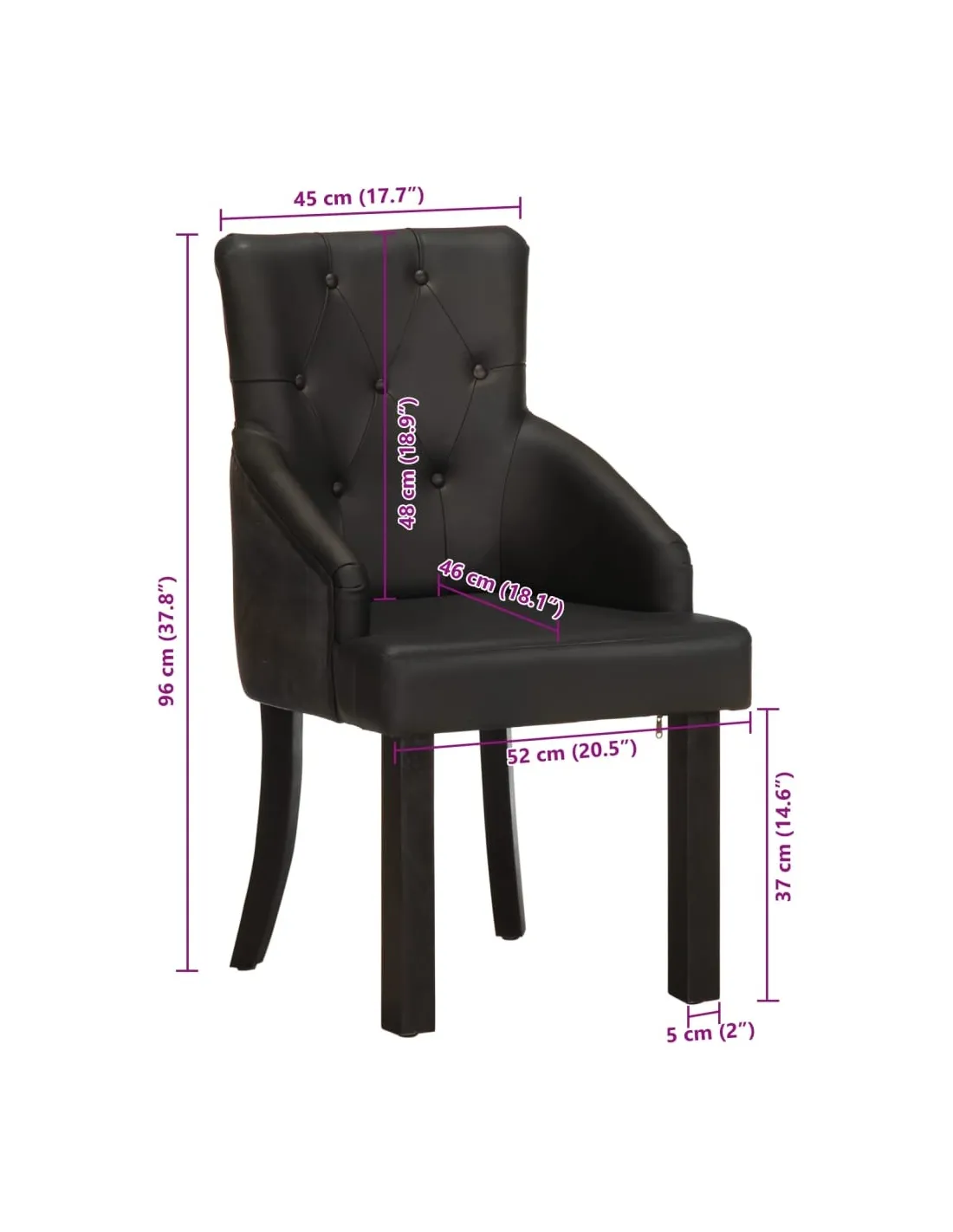 - Hauteur du dossier depuis l'assise : 49 cm