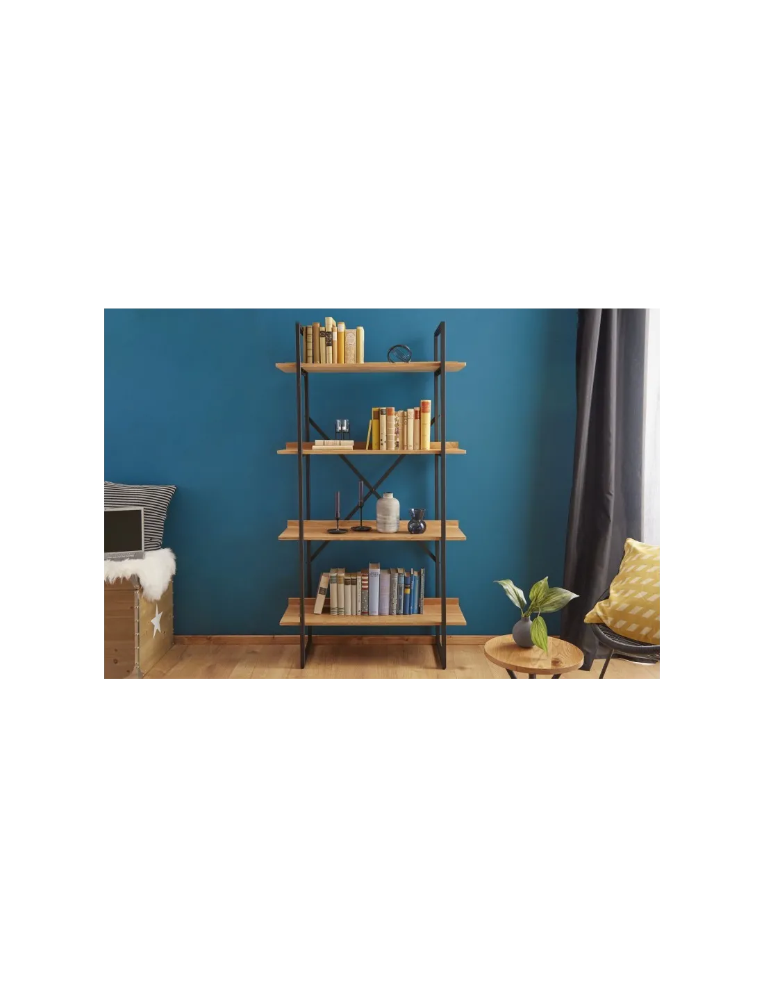 Rangez vos objets en élégance avec cette jolie étagère à 4 planches de style industriel ! fabriqué joliment en bois de belle couleur chêne avec une structure solide en métal coloris noir !