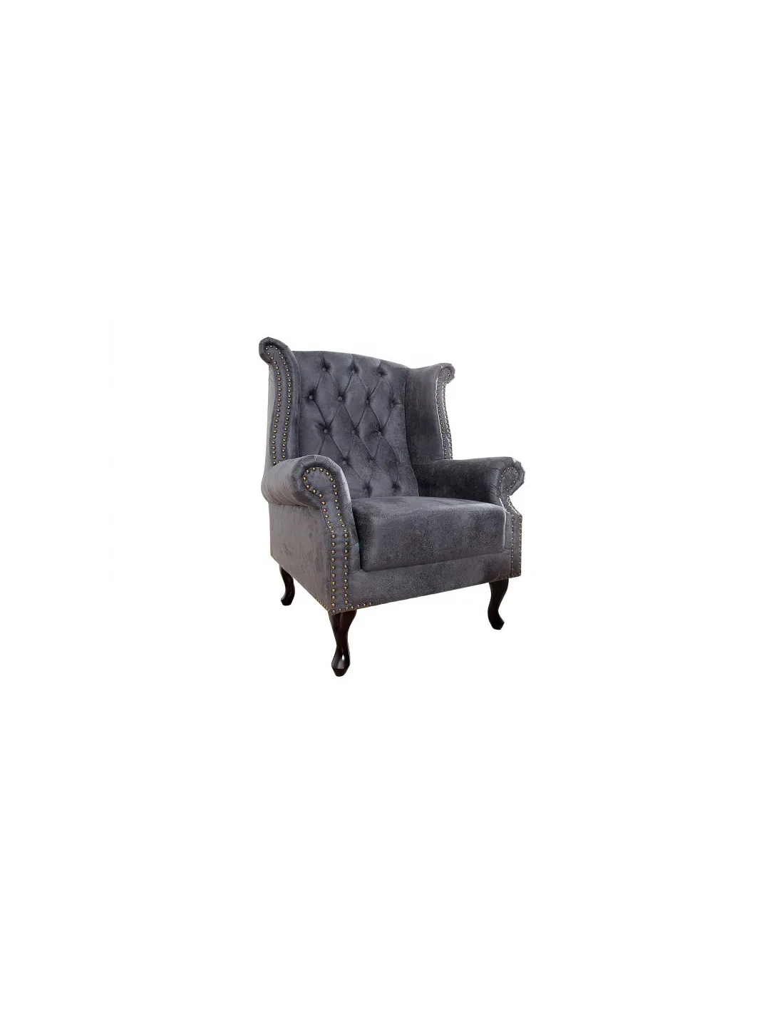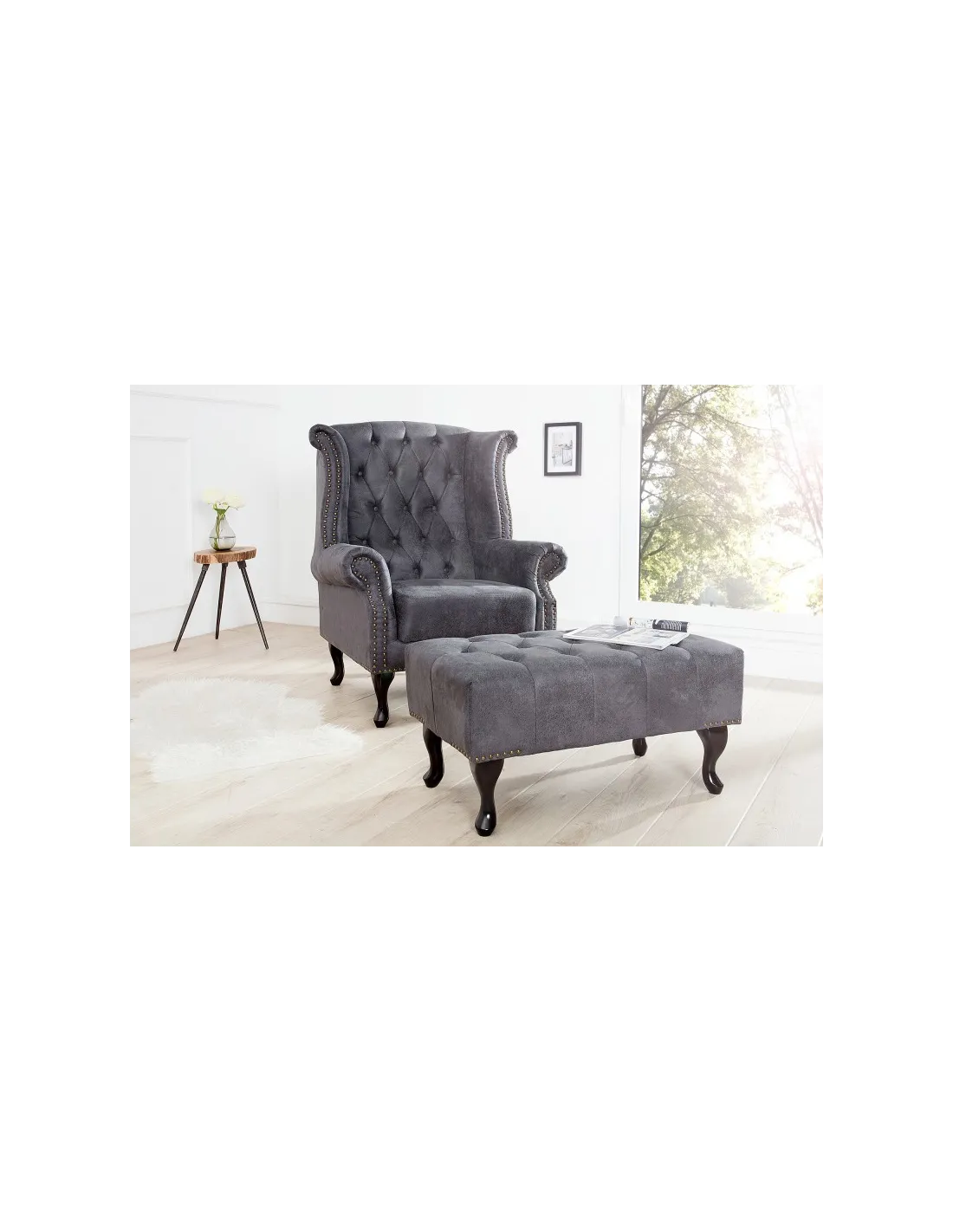 Fauteuil CHESTERFIELD Aspect Antique en Microfibre Gris – Élégance et Confort intemporels
