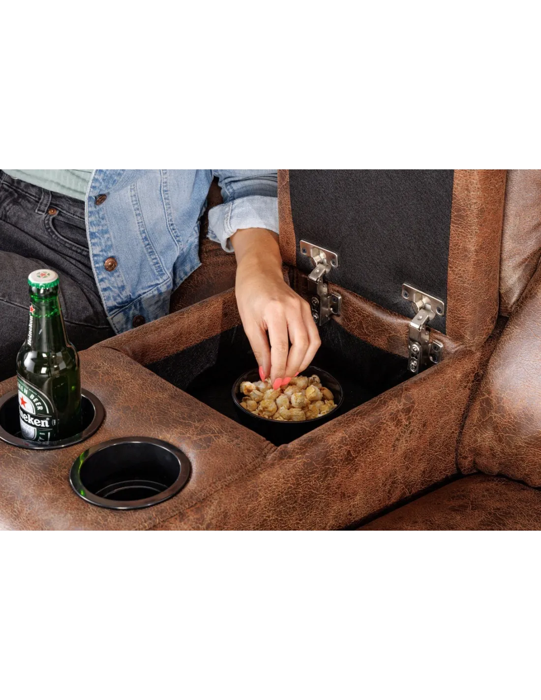Design et Utilisation : Ce fauteuil combine élégance et utilité, idéal pour les espaces de détente comme le salon ou la salle familiale. Le tissu en polyester assure une durabilité et un entretien facile, tandis que les fonctionnalités comme les porte-gobelets et le rangement entre les sièges ajoutent une touche pratique à votre quotidien.