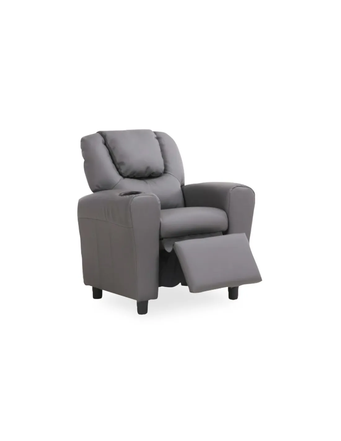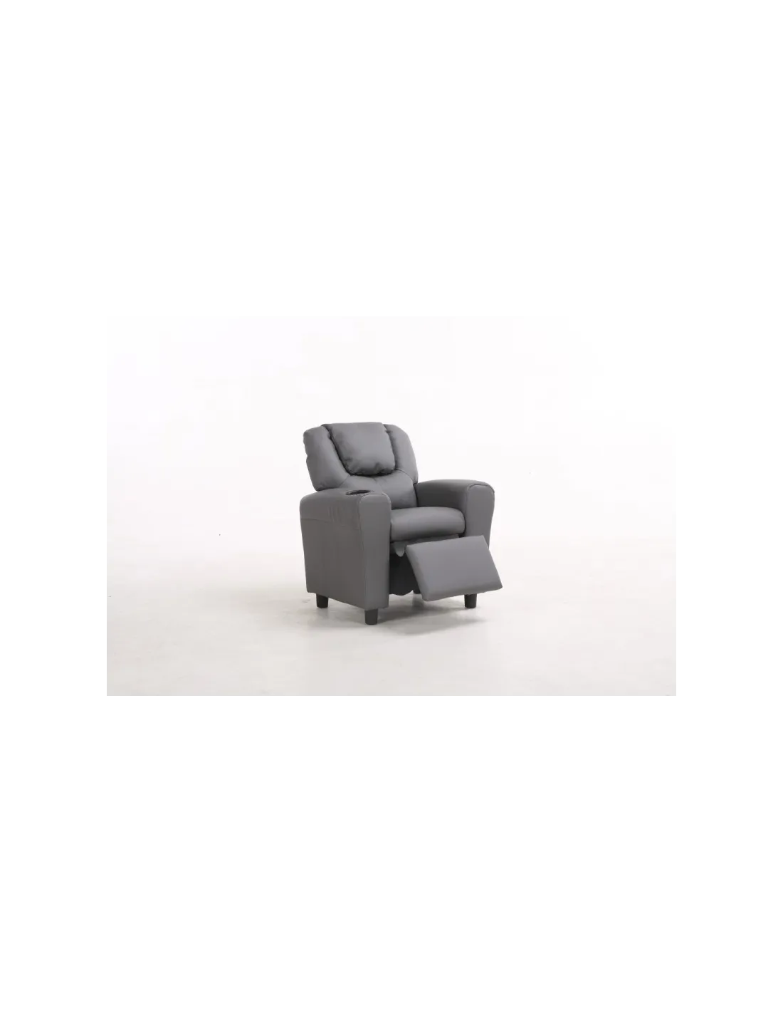 Confort inégalable pour ce mini fauteuil relax en simili cuir coloris gris. Relevable manuellement !