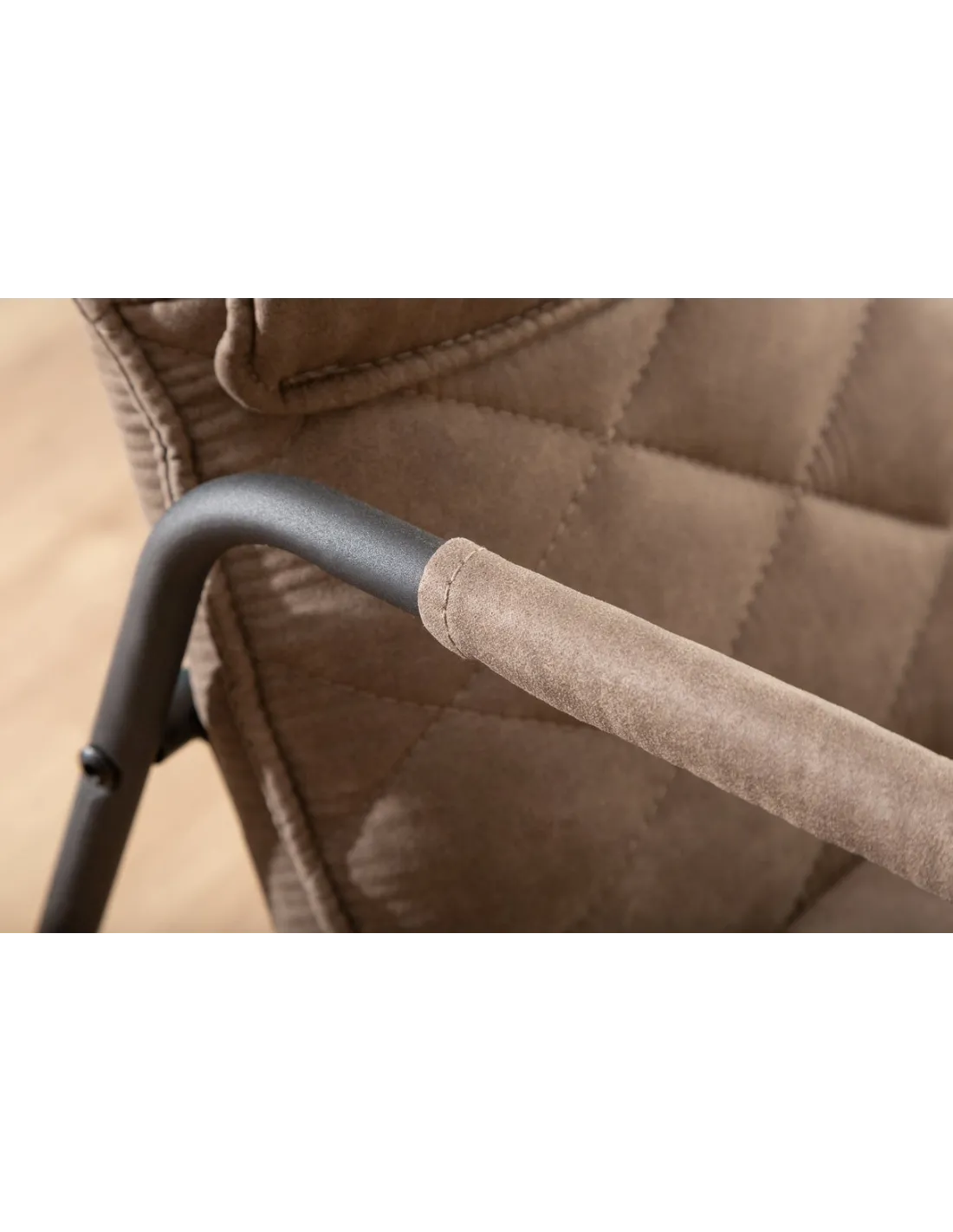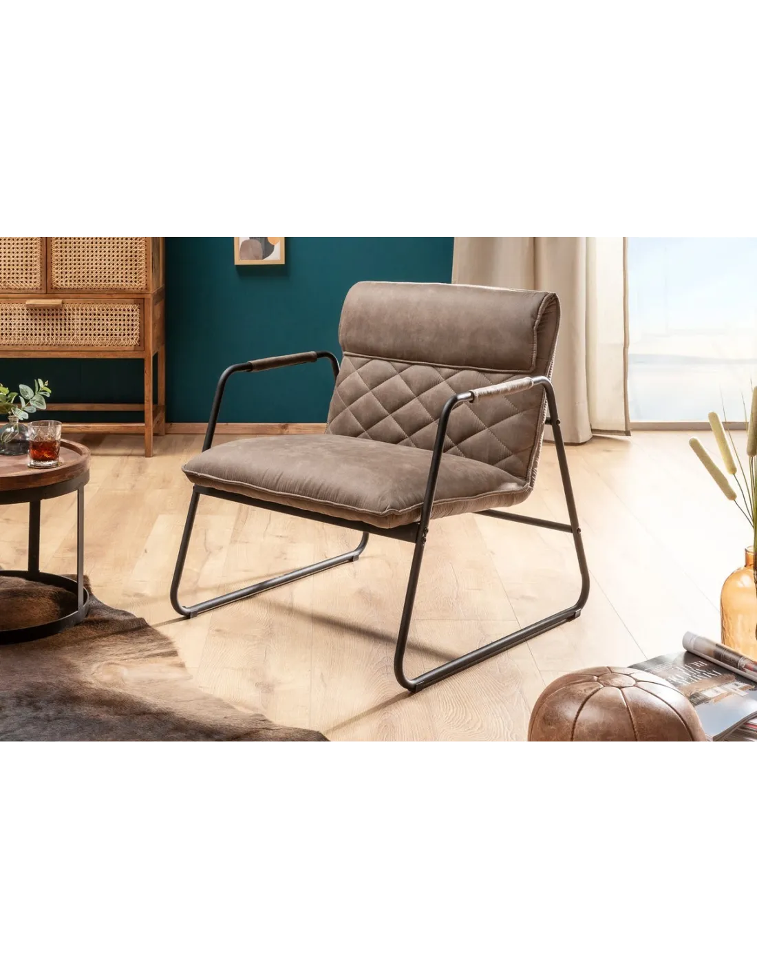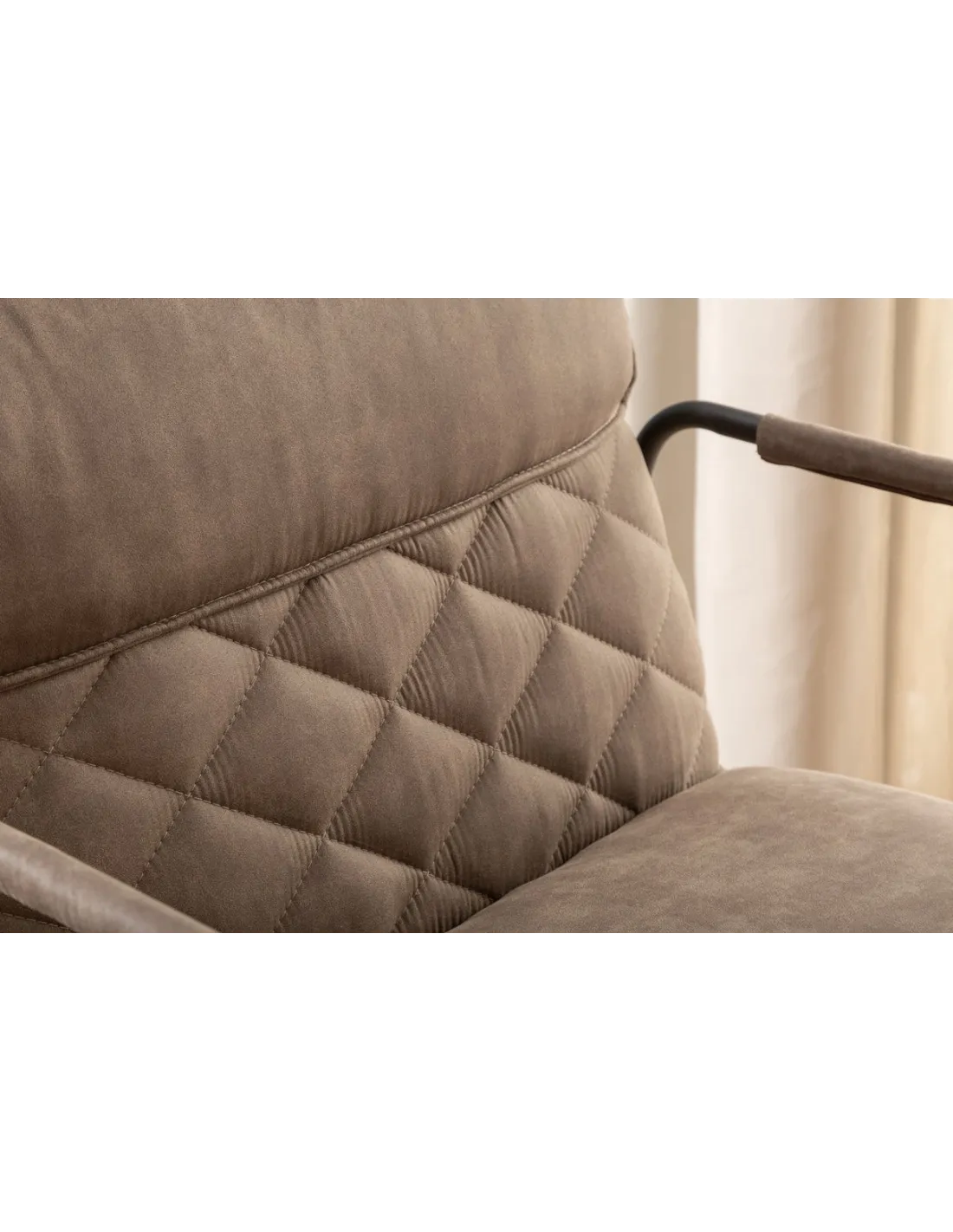 Design et Confort : Ce fauteuil se distingue par son design rétro et l'utilisation de matériaux de haute qualité. Le revêtement en microfibre taupe antique offre une texture douce et agréable au toucher, tandis que le rembourrage en mousse assure un confort optimal. Le cadre en métal matelassé décoratif ajoute une touche de charme et de robustesse à l'ensemble.