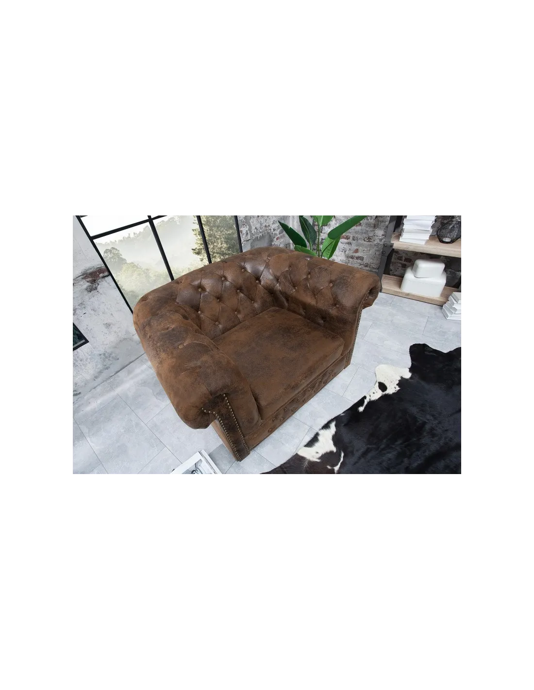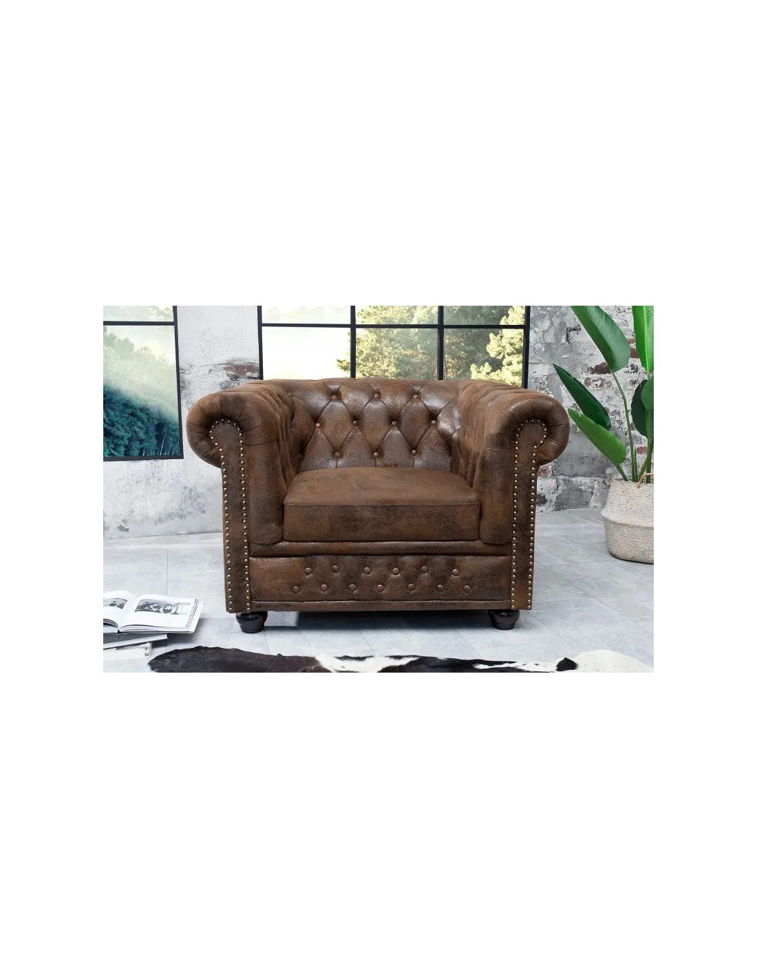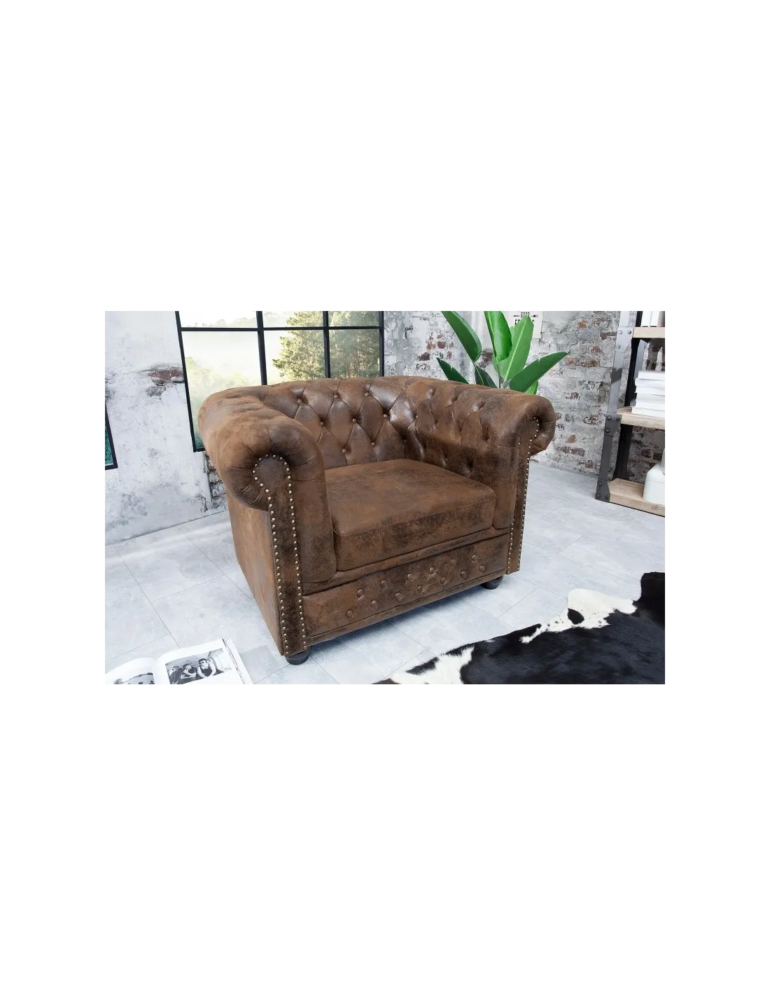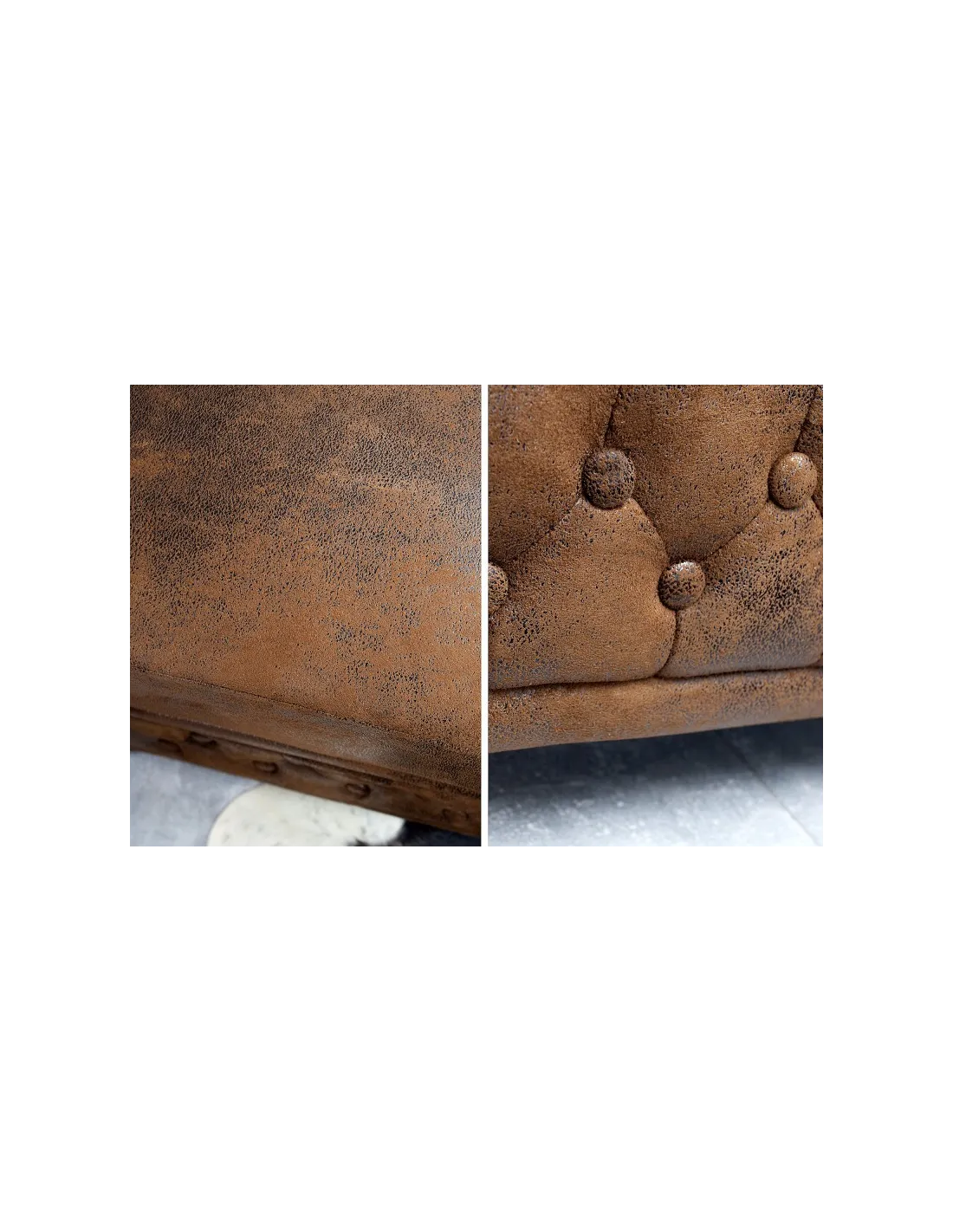 Apportez une touche d’élégance intemporelle à votre intérieur avec le fauteuil Chesterfield en aspect antique marron. Son design emblématique, caractérisé par un capitonnage soigné et des accoudoirs roulés, en fait un véritable classique du mobilier chic et raffiné.