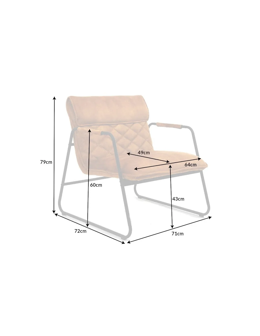 - Dimensions de l'assise : 64 cm x 43 cm x 49 cm (L x H x P)