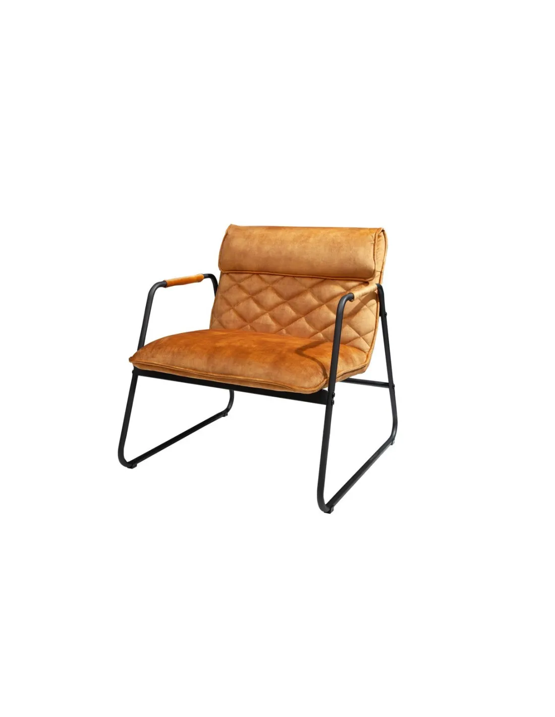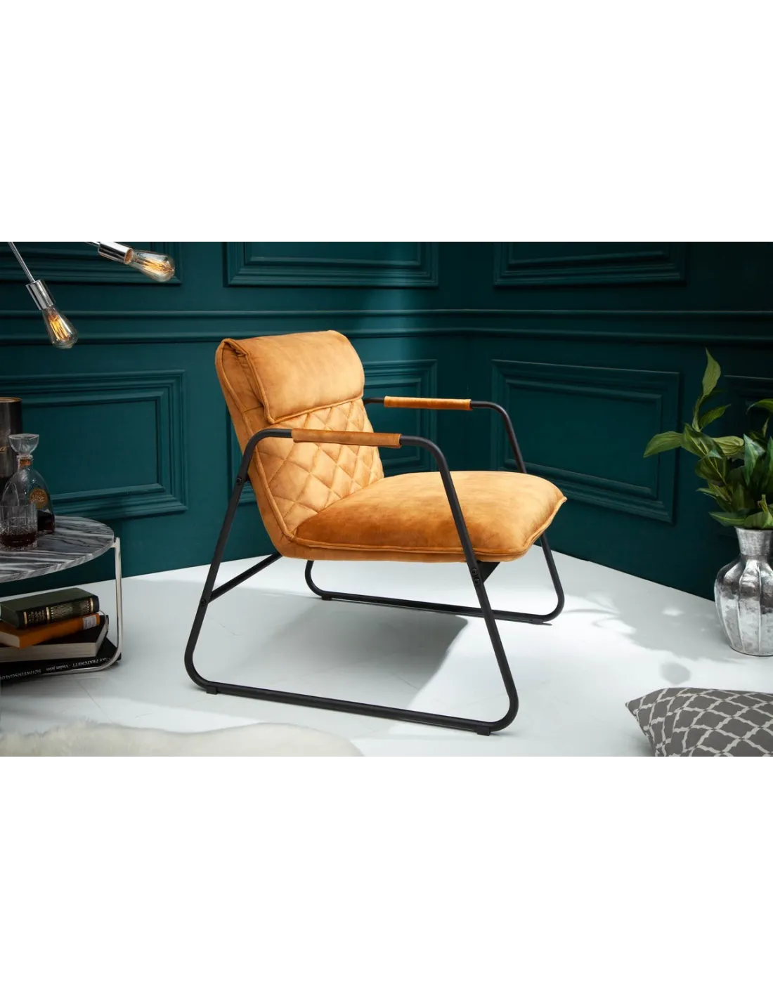 Fauteuil Rétro en Velours jaune moutarde avec Matelassage en Losanges
