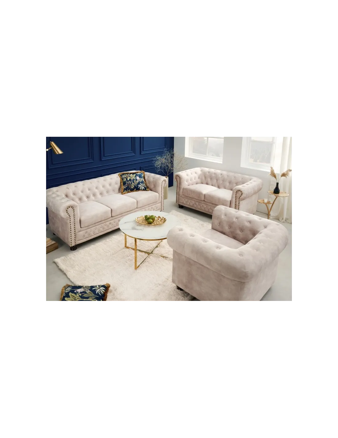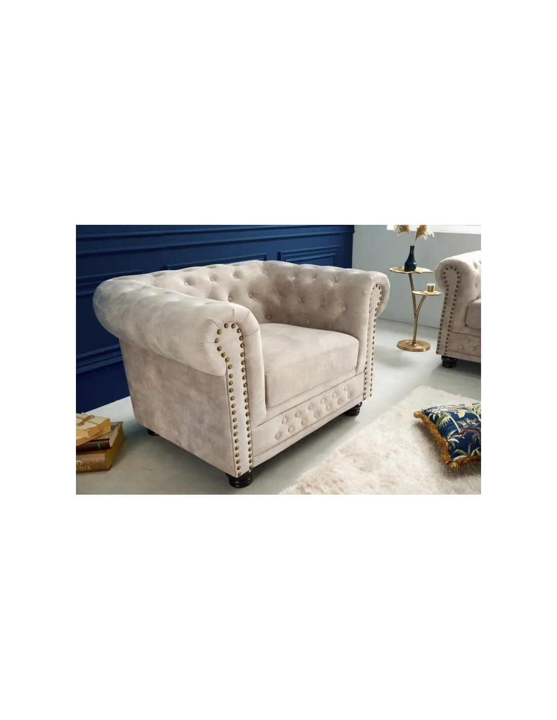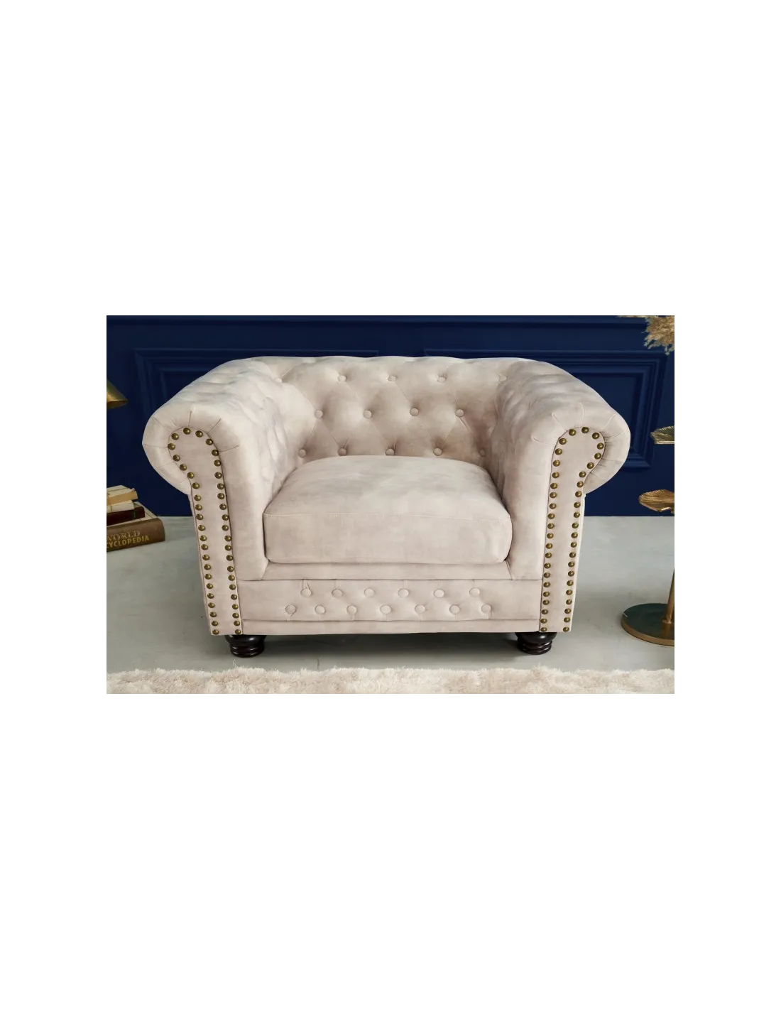 ✨ Apportez du cachet à votre intérieur avec le fauteuil CHESTERFIELD en velours champagne !