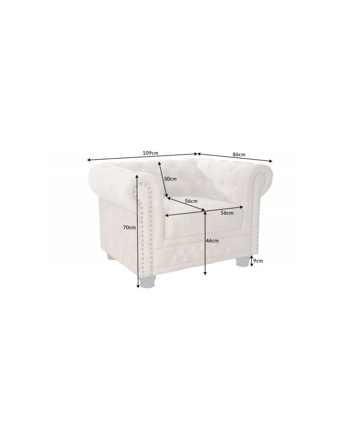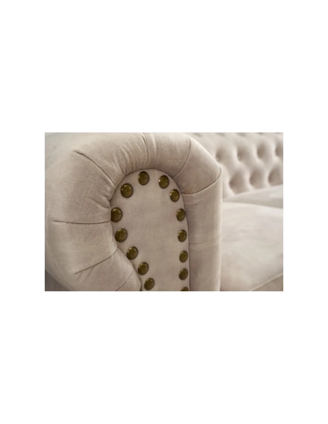 ✔ Capitonnage classique Chesterfield, avec accoudoirs roulés et finitions soignées.