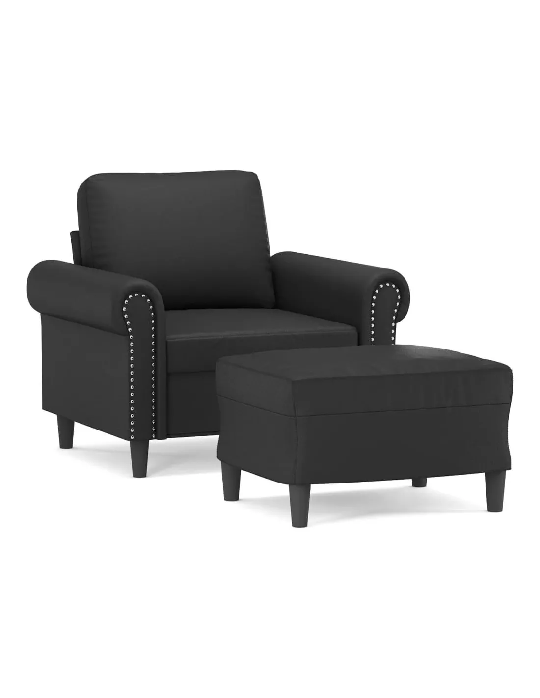 Fauteuil avec repose-pied Noir 60 cm Similicuir