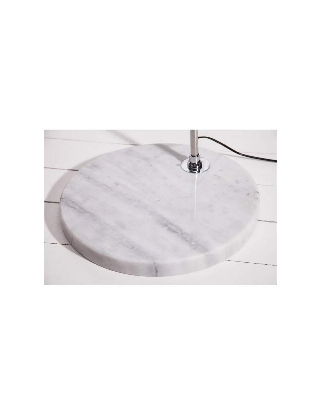 Lampadaire blanc de forme ronde avec un châssis de lampe fabriqué en marbre pour une stabilité optimale.