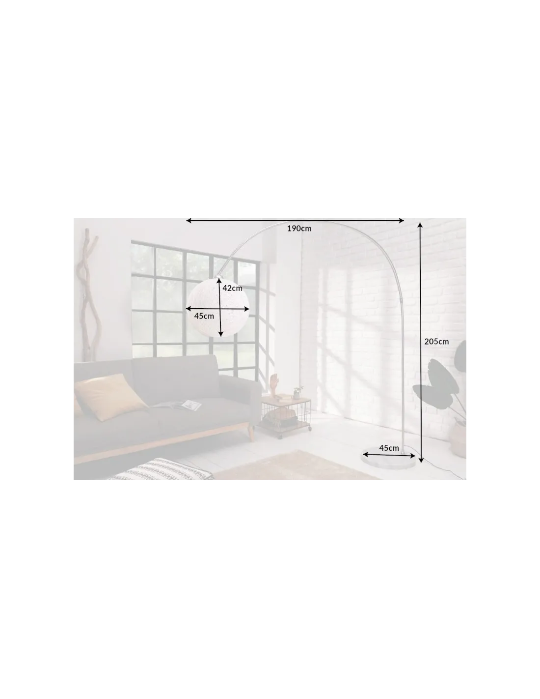 LAMPADAIRE ARC DESIGN COCOON COLORIS BLANC 205cm