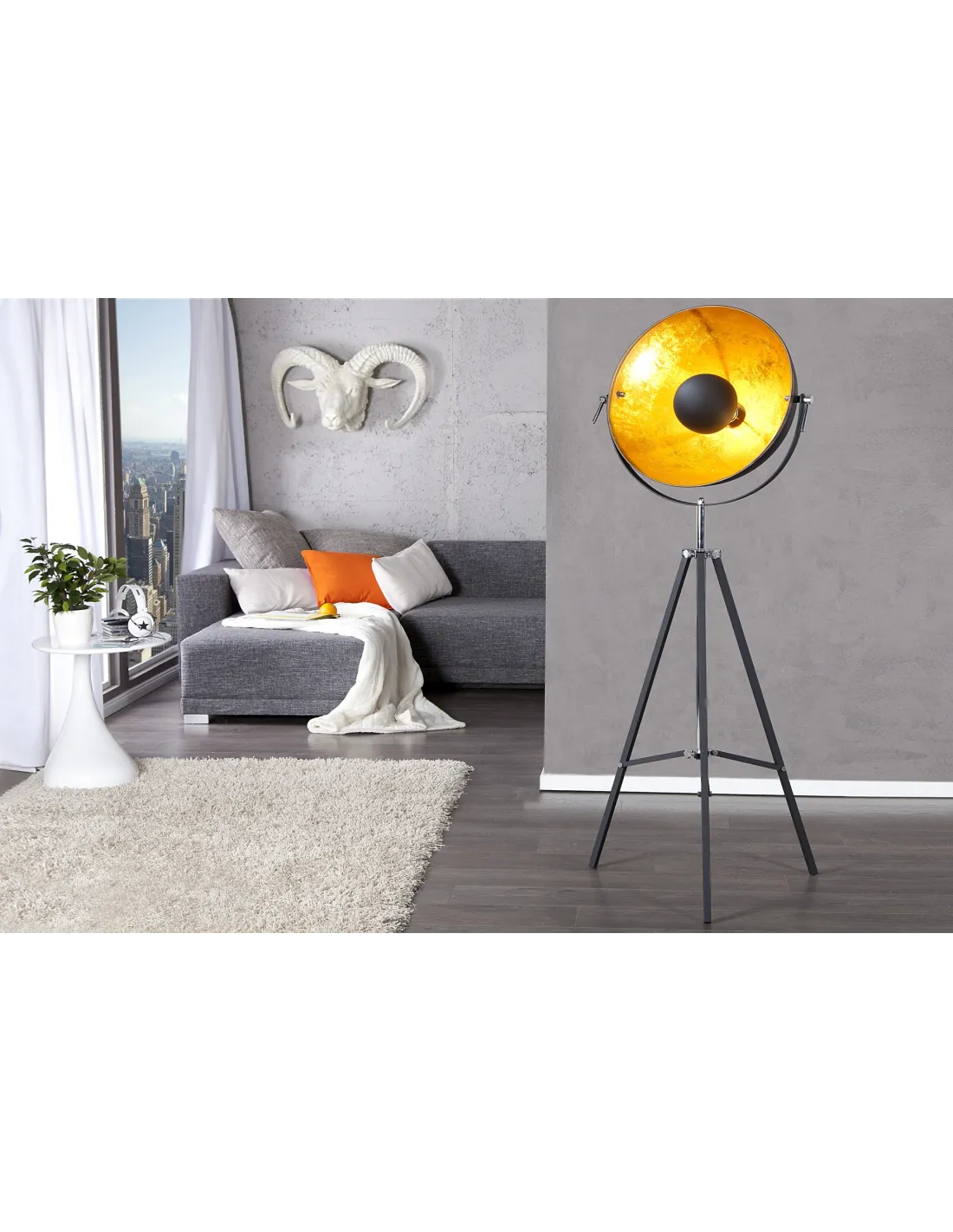 Lampadaire trépied 160 cm en acier inoxydable coloris noir et or