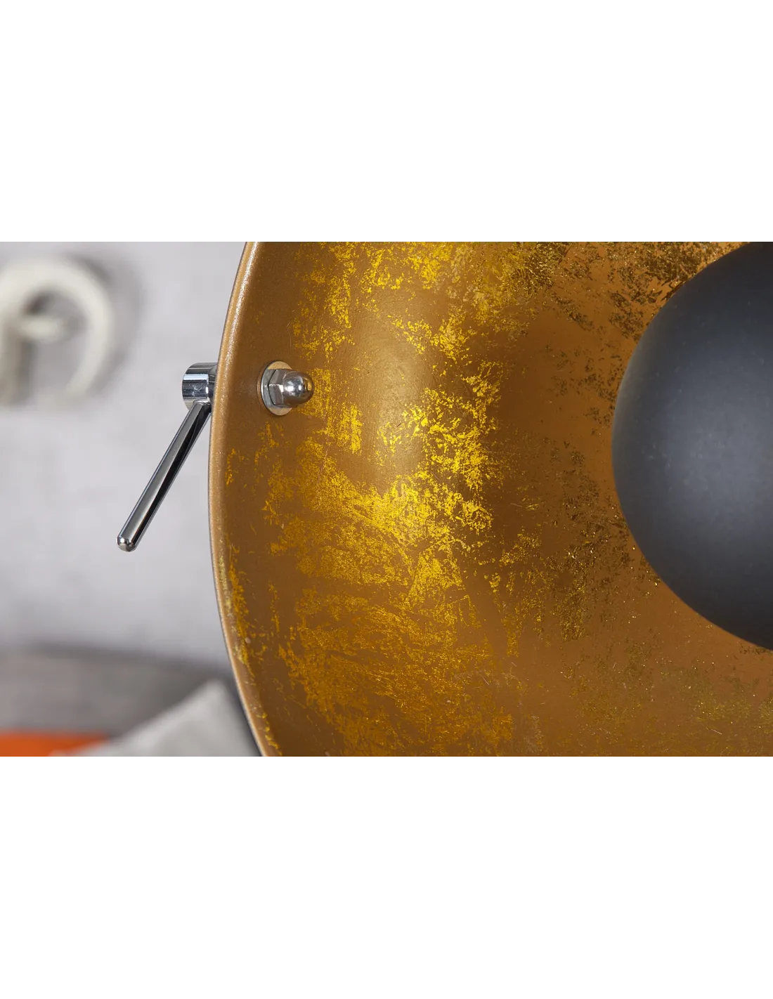 Un lampadaire en acier inoxydable et l’aluminium garantira un décor unique et très élégant à votre intérieur, avec un abat-jour d’une forme hémisphère en aluminium coloris noir et or, et un support à trois pieds télescopique stable et réglable en hauteur assure la stabilité absolue.