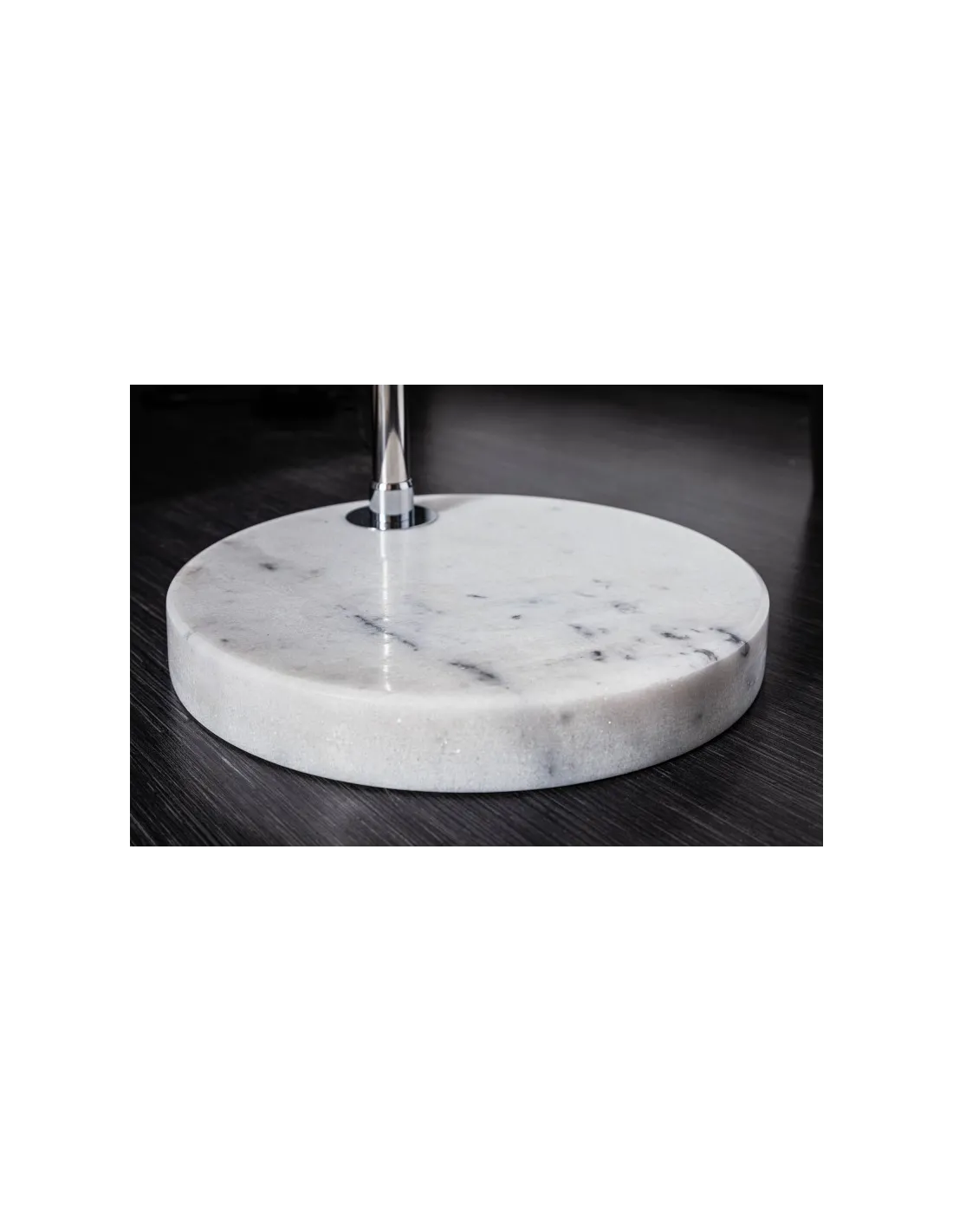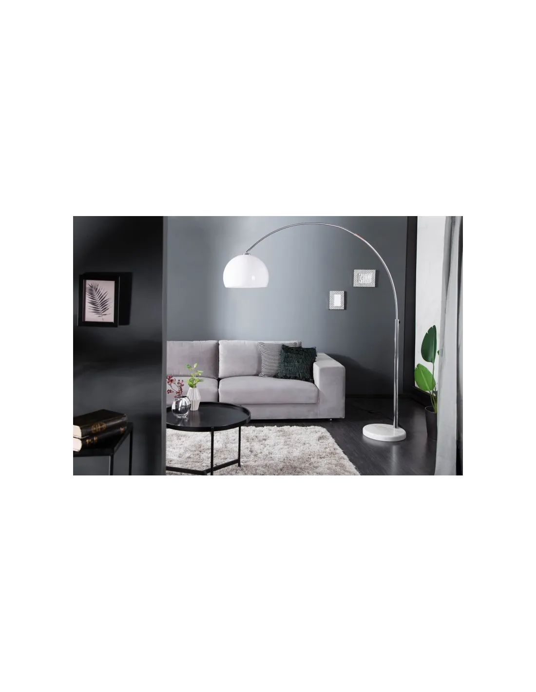 Un lampadaire extensible blanc de design arc avec un abat-jour blanc, placé sur une base en marbre blanc ajoutera un design de luxe à votre intérieur.