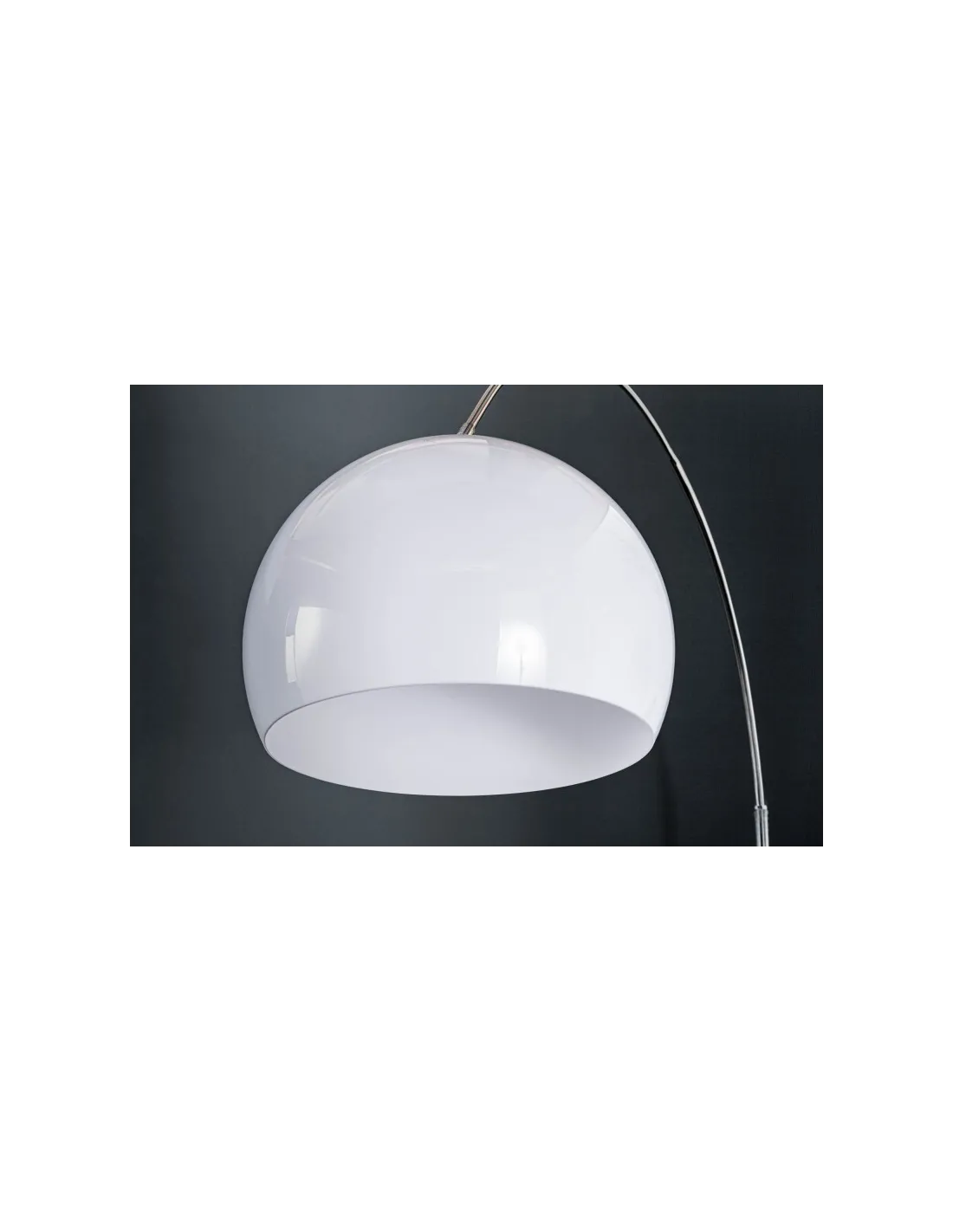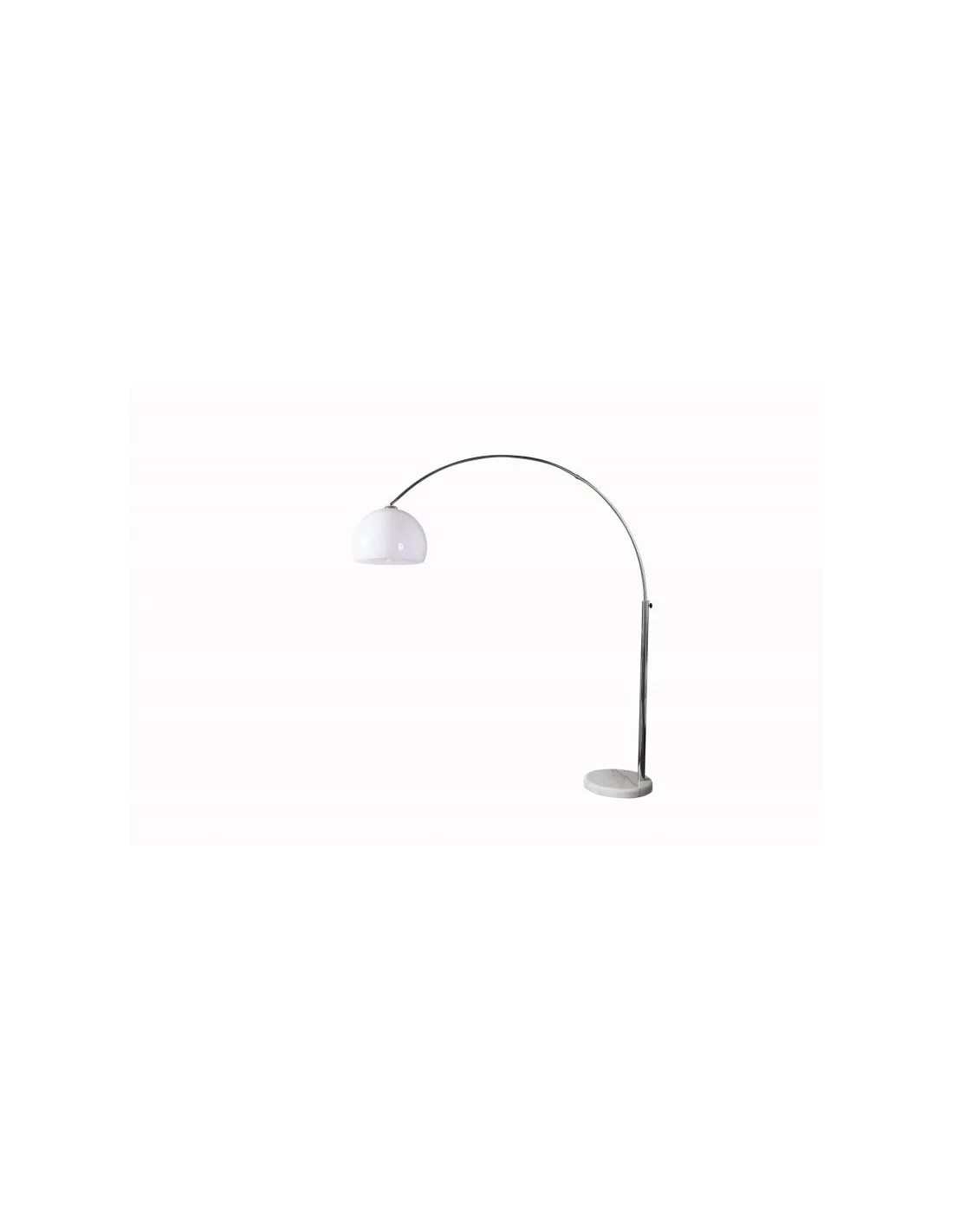 Un lampadaire élégant offre une touche de glamour à votre intérieur, avec un support métallique extensible sous forme d’arc, un socle rond solide en pierre de marbre blanc, et un abat-jour blanc.