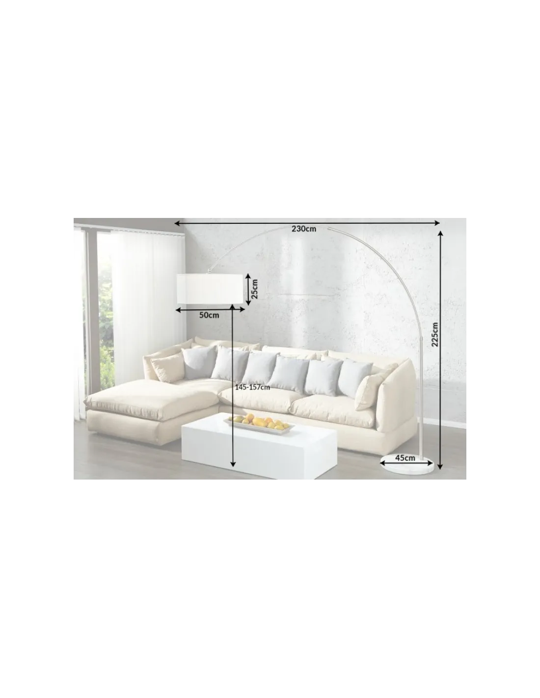 - Largeur: 225 cmHauteur: 200 cmHauteur abat-jour: 48 cmDiamètre abat-jour: 22 cm