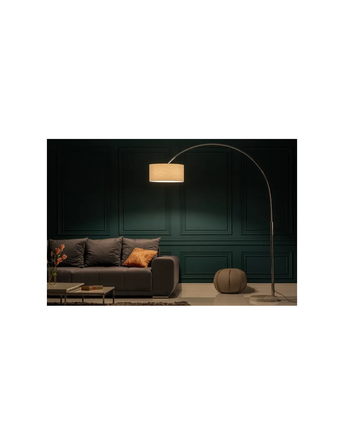 Lampadaire élégant offre une touche glamour à votre intérieur, avec un support métallique sous forme d’arc, un socle rond solide en marbre blanc, et un abat-jour toile de lin blanc.