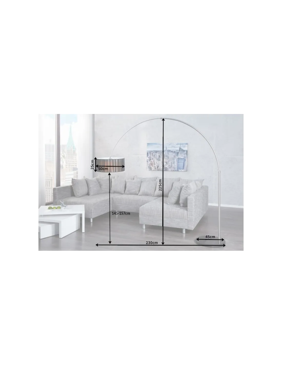 - 230cm x 225cm (L x H) Diamètre: 45 cmHauteur abat-jour: 25 cm