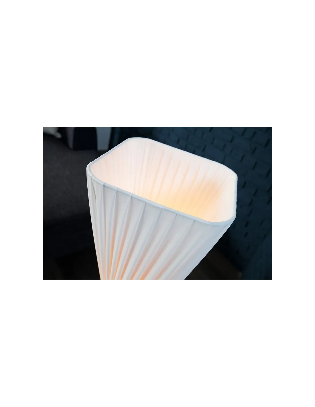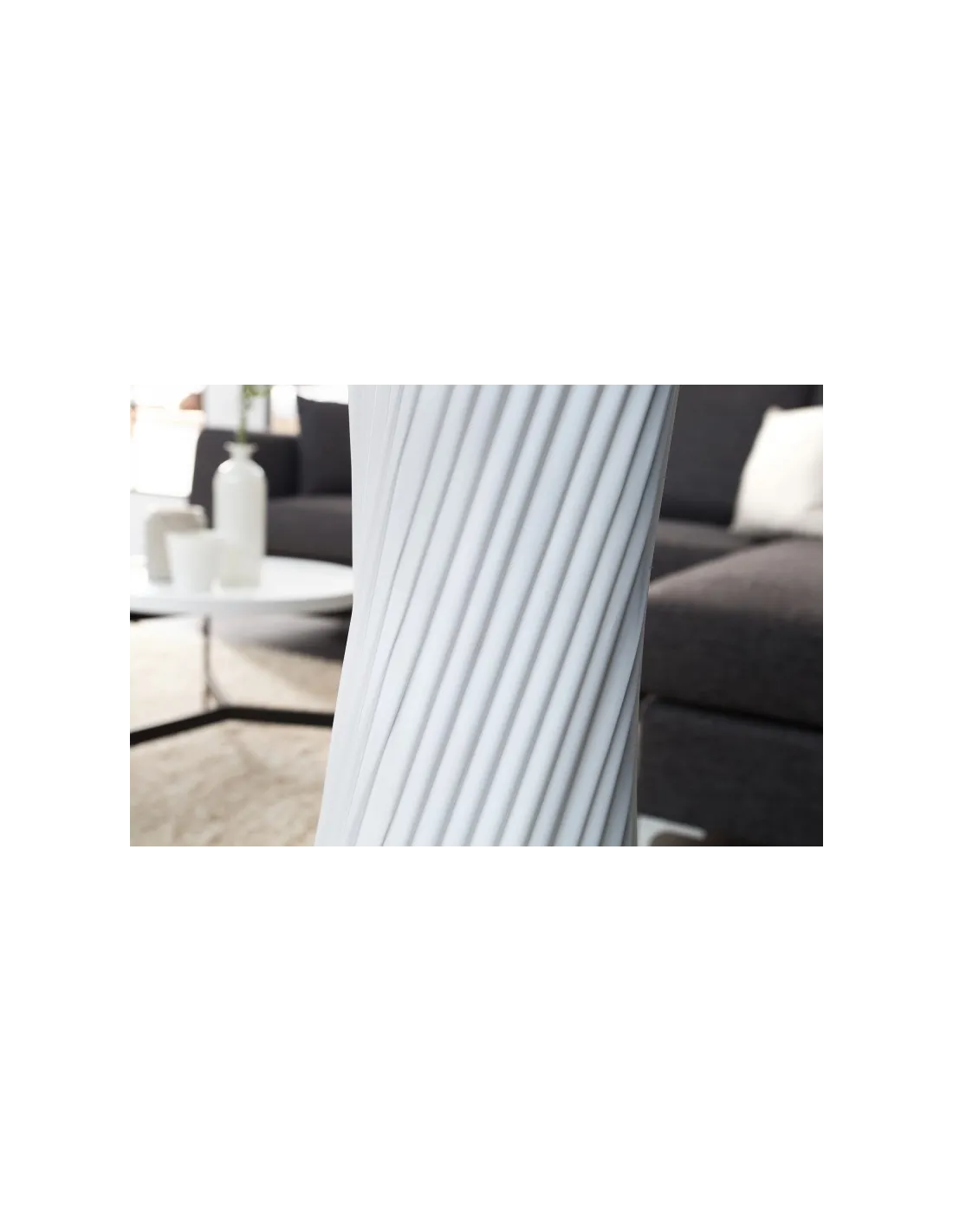 Un lampadaire élégant de design moderne, conçu en tissu plissé de latex blanc, de forme ovale avec une sténose au milieu idéale pour une atmosphère ultra design et chic à votre intérieur.