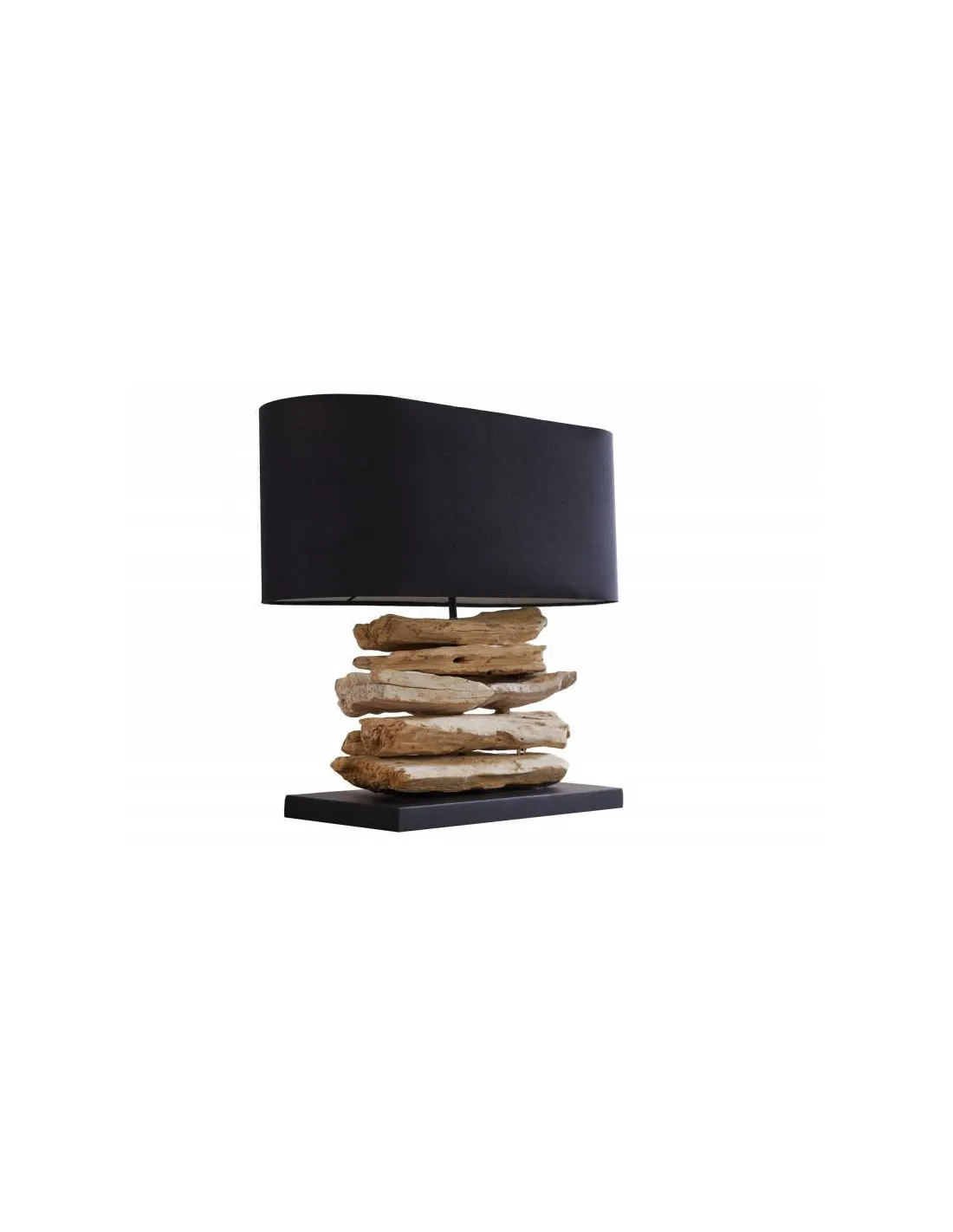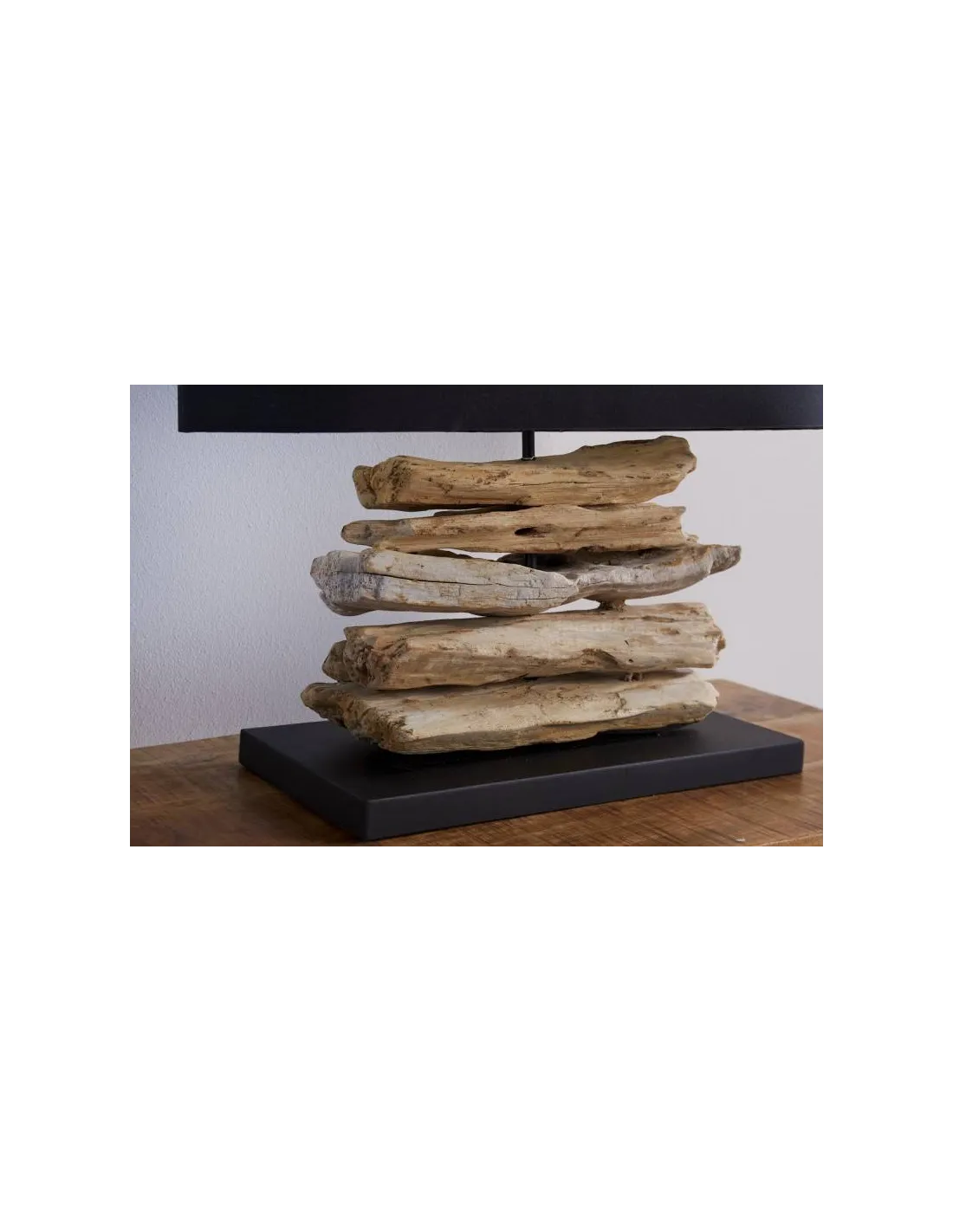 Lampe à poser design naturel en bois flotté avec abat jour en toile noir