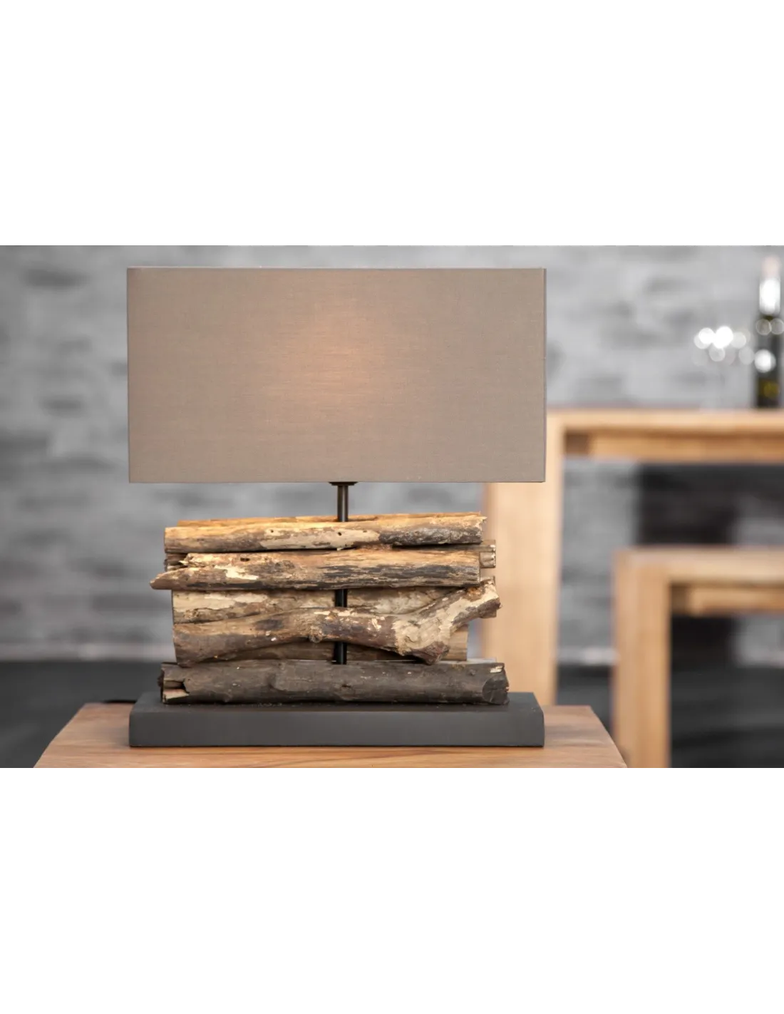 Magnifique lampe à poser avec un abat-jour en lin marron et un socle en bois flotté fait à la main ajoutera une atmosphère naturelle et chic à votre intérieur.