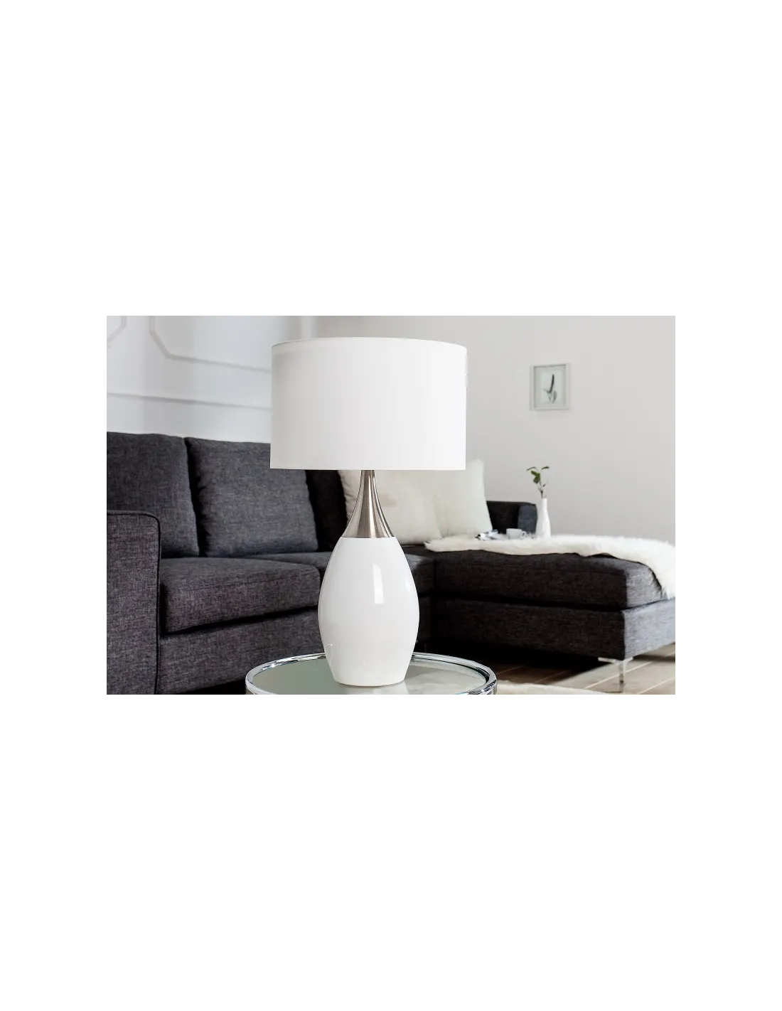 Le charme et la douceur s'invitent dans votre intérieur grâce à cette lampe à poser blanche en toile et en métal, son design de luxe vous offrira une touche très classe avec une lumière chic et ravissante, à placer magnifiquement sur une table, une enfilade ou un chevet !