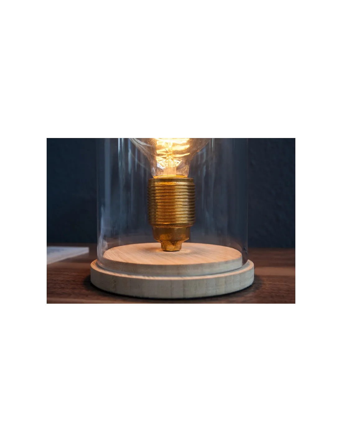 Lampe à poser design rétro en bois et verre