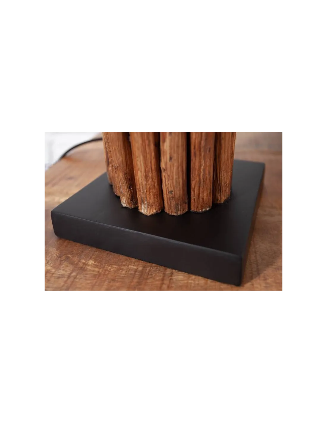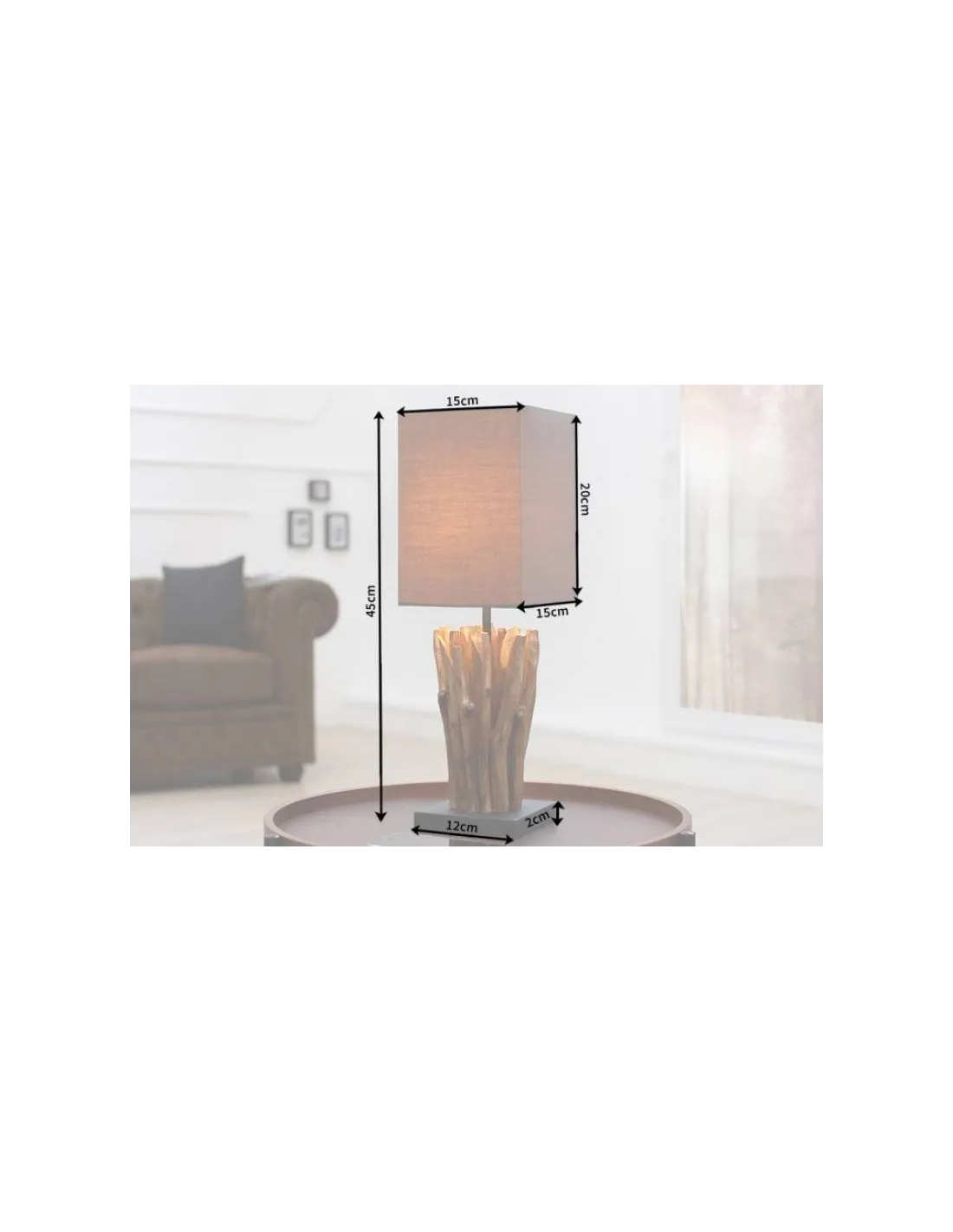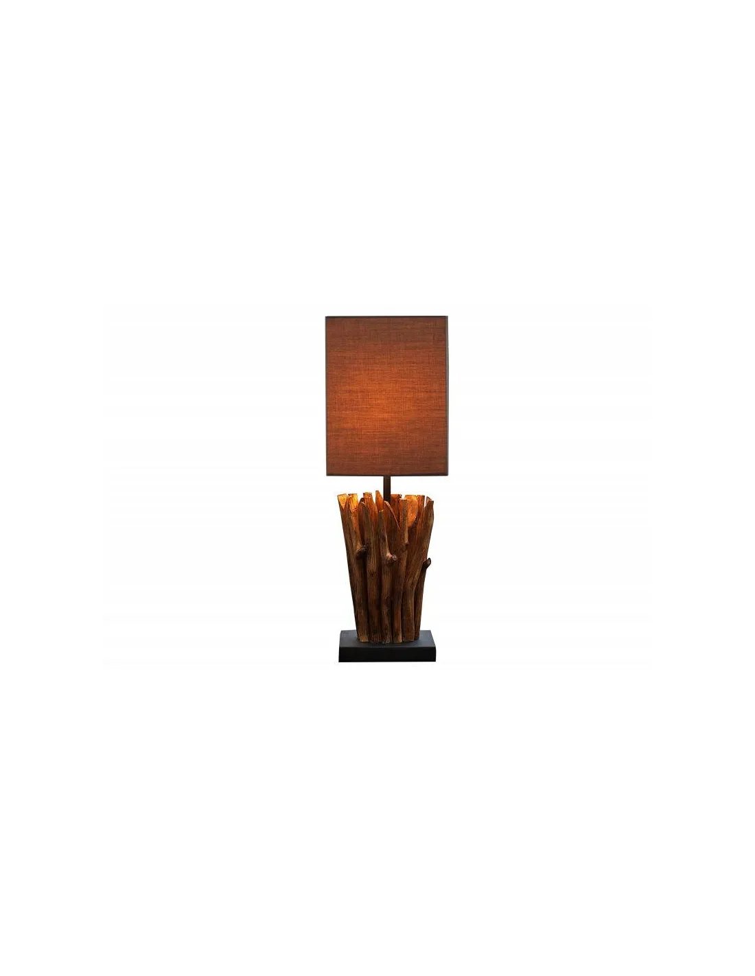 Une lampe de table avec un cadre robuste fabriqué en bois naturel look flotté,une base coloris noir et un superbe abat jour d'une couleur gris nuance brun, sa structure vous offrira une ambiance chaleureuse où vous la placiez sur la table de votre salon ou votre chambre.