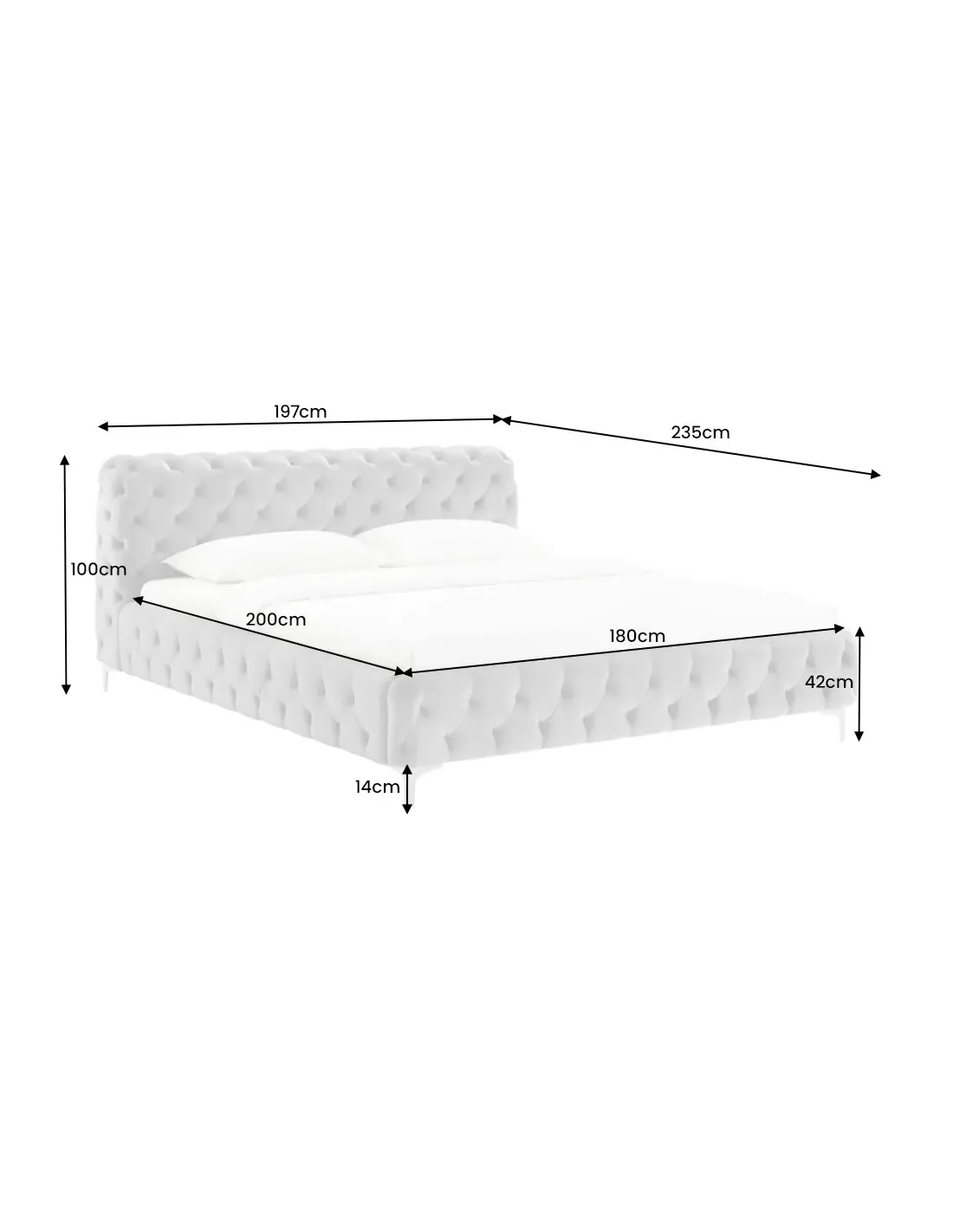 Style : baroque moderne avec tête et pied de lit capitonnés façon Chesterfield