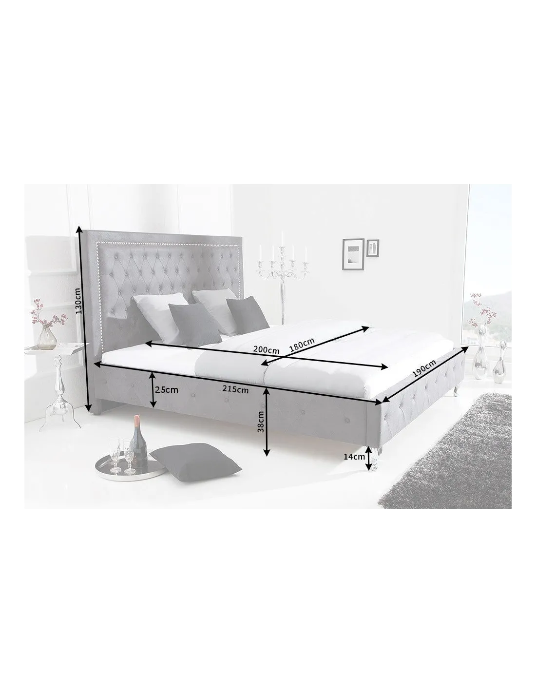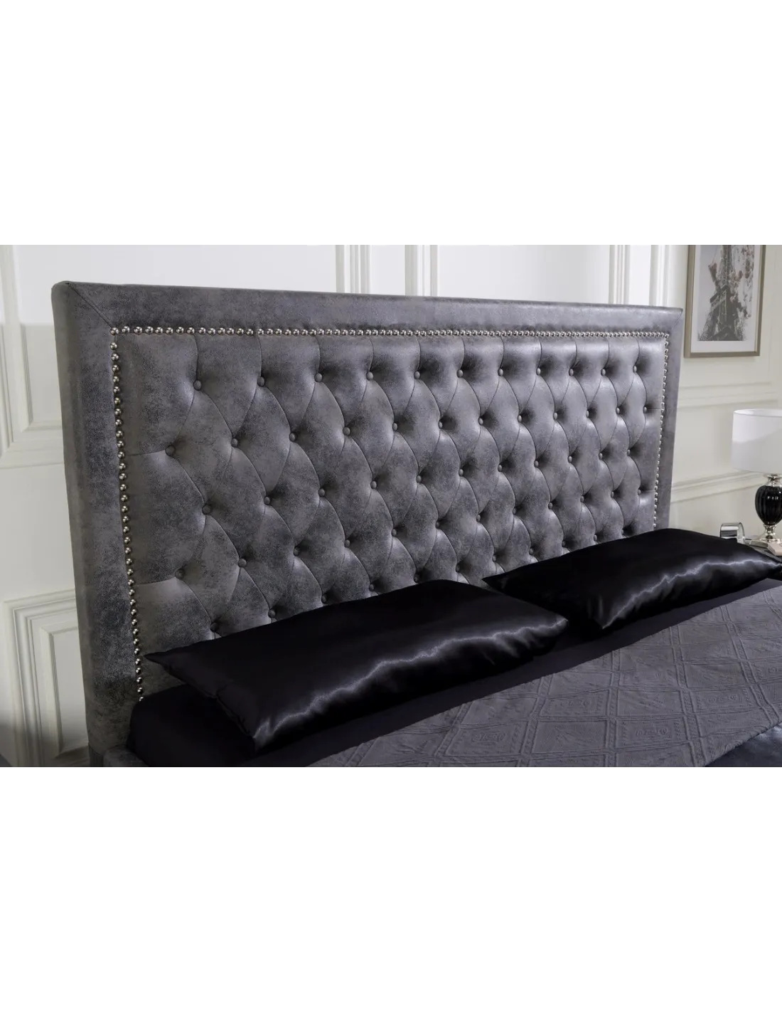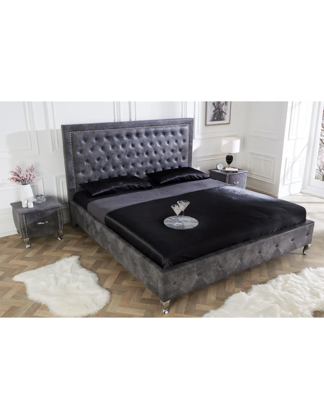 Lit design 180x200cm avec rivets de velours gris antique