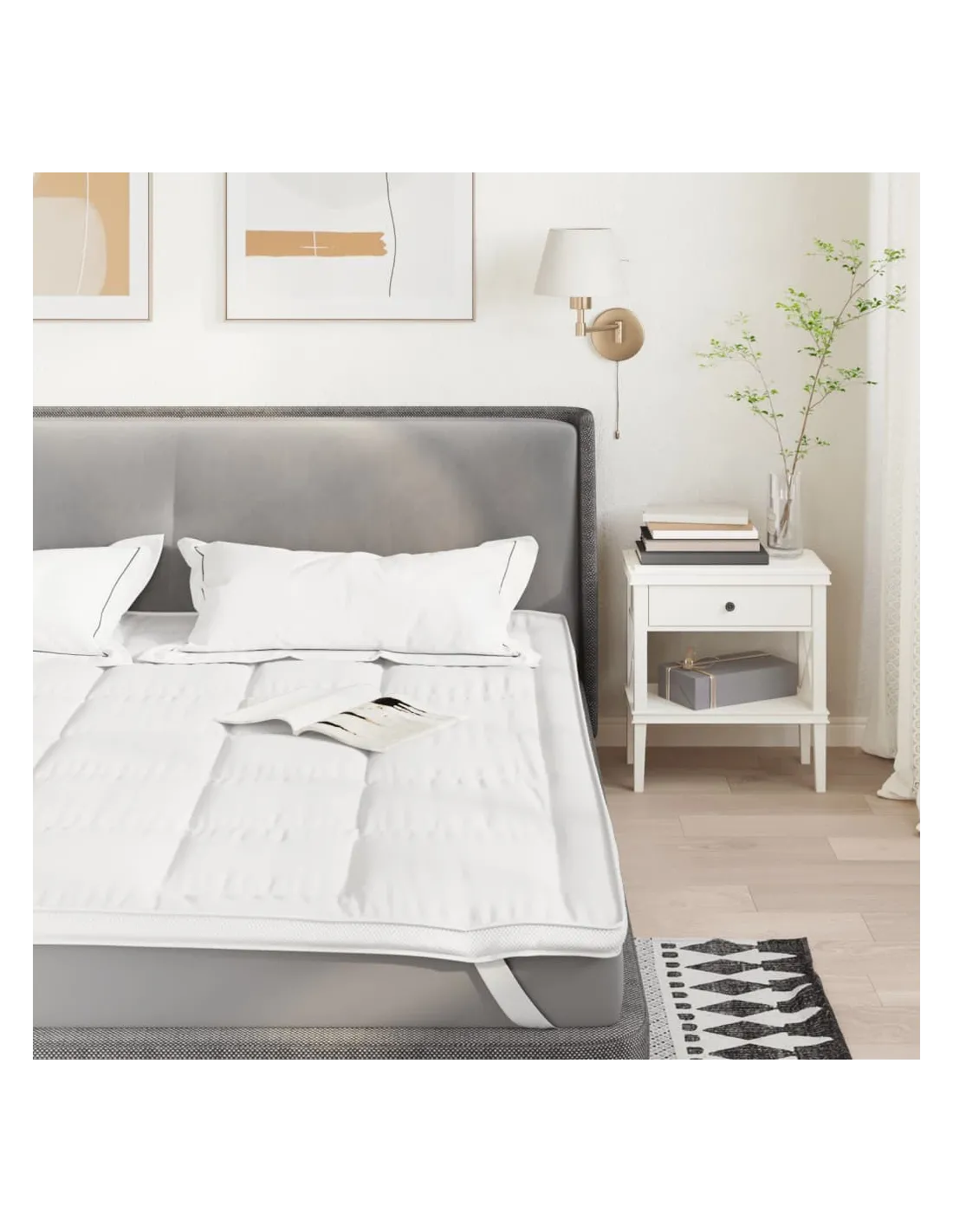 Ce protège-matelas protège votre matelas des taches et de la saleté, contribuant ainsi à prolonger sa durée de vie. Ultra doux et respirant : ce protège-matelas matelassé est composé de 3 couches, composées d'un dessus en microfibre douce, d'un rembourrage en polyester moelleux et d'un dessous en tissu non tissé durable. Il évacue efficacement l'humidité et régule la température, offrant à vous et à votre famille un environnement de sommeil frais et frais.Bonne circulation de l'air : le tissu d'air 3D sur les côtés du protège-matelas améliore la circulation de l'air, réduit les odeurs et aide à prévenir les bactéries et les moisissures, gardant le protège-matelas frais et respirant.Restez en place : les sangles élastiques aux quatre coins assurent un ajustement parfait sur votre matelas, le maintenant bien en place.Entretien facile et lavable en machine : ce protège-matelas peut être facilement lavé en machine à 30°C pour un entretien pratique.