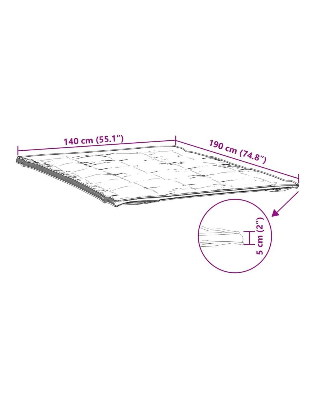 • Dimensions : 140 x 190 x 5 cm (l x L x é)