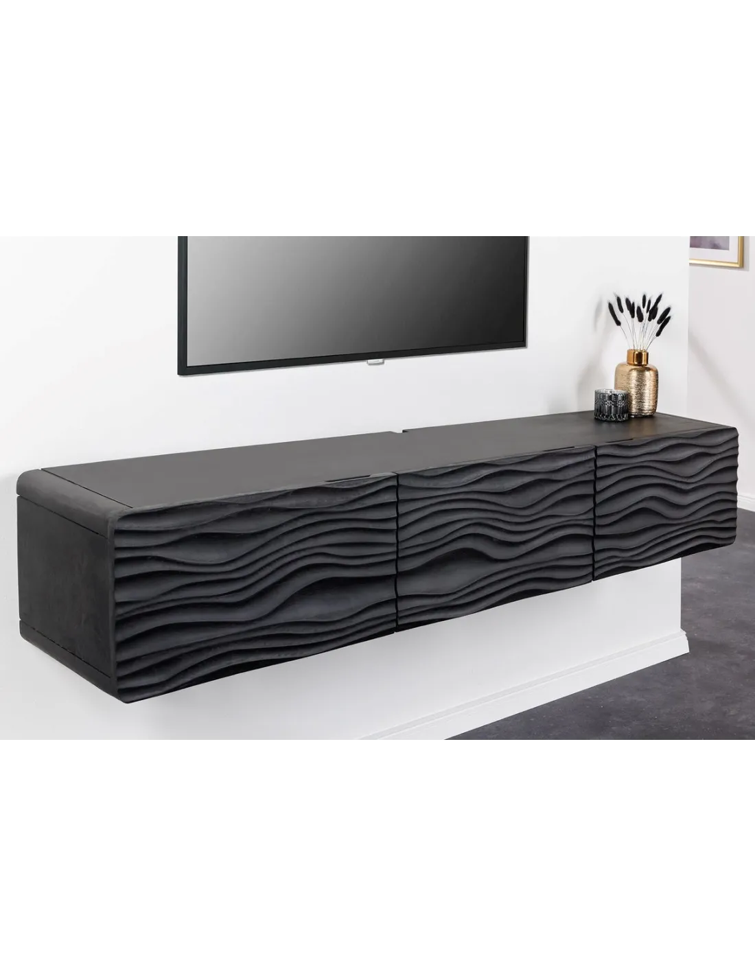 Meuble TV en Bois de Manguier Laqué avec Motif de Vagues