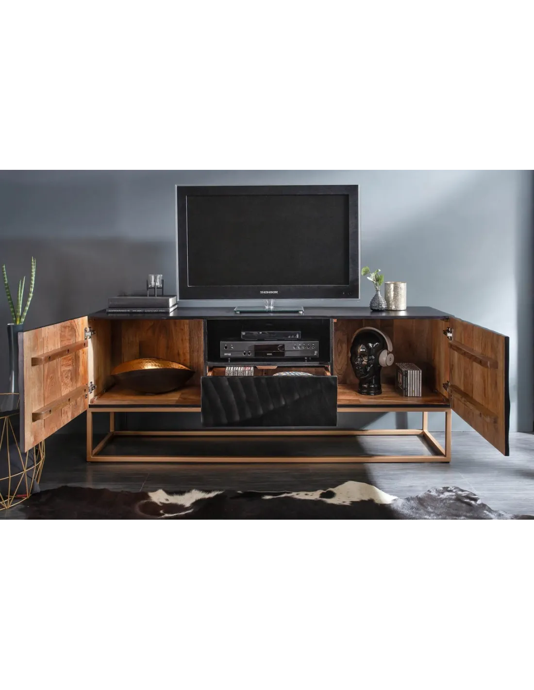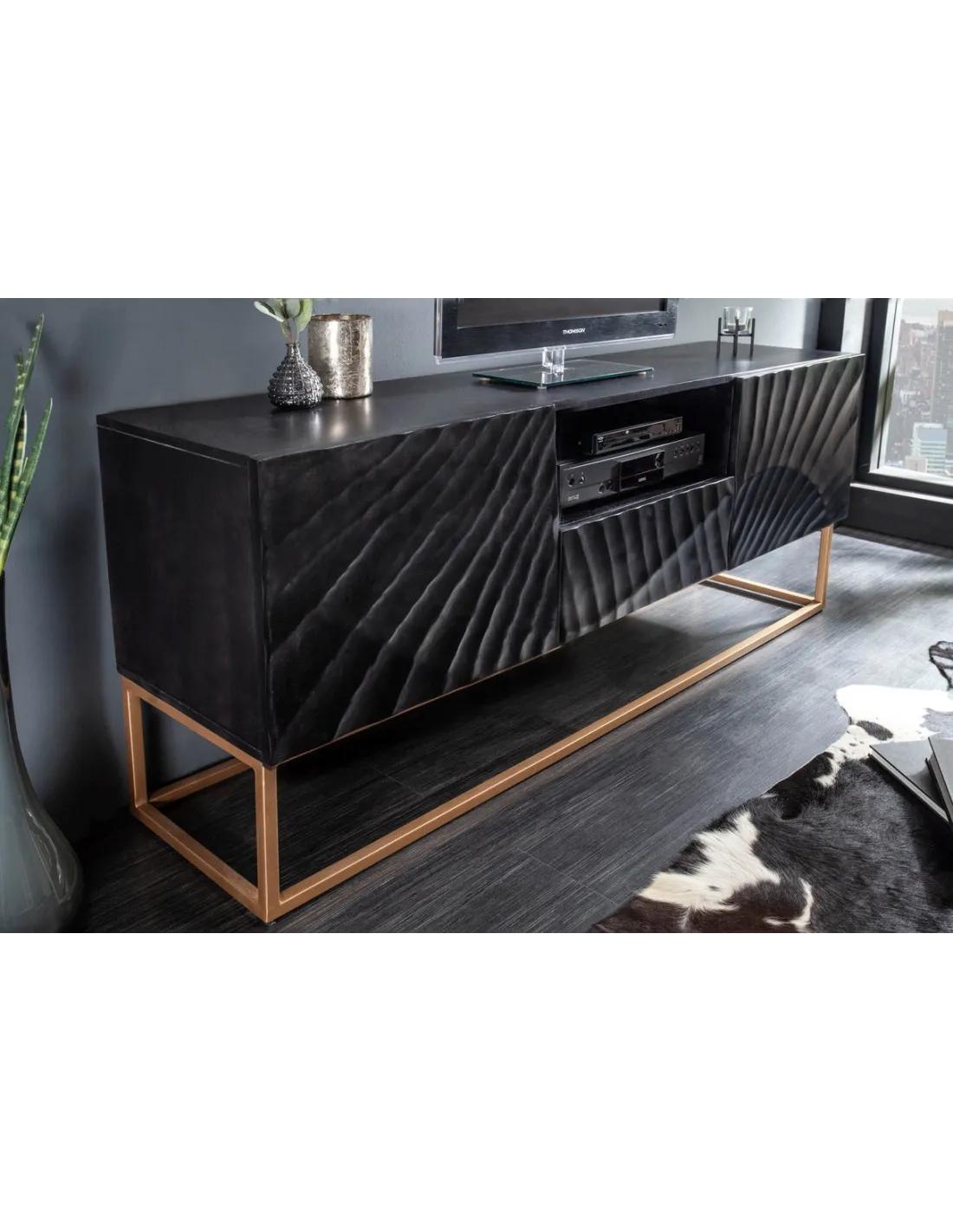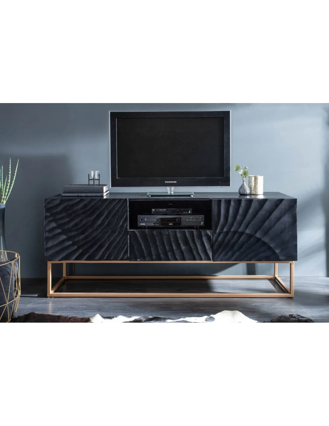 Transformez votre espace de divertissement avec ce meuble TV en bois massif noir. Ses sculptures 3D réalisées à la main ajoutent une touche artistique, tandis que sa construction solide et ses caractéristiques fonctionnelles en font un choix exceptionnel pour une expérience multimédia sophistiquée.