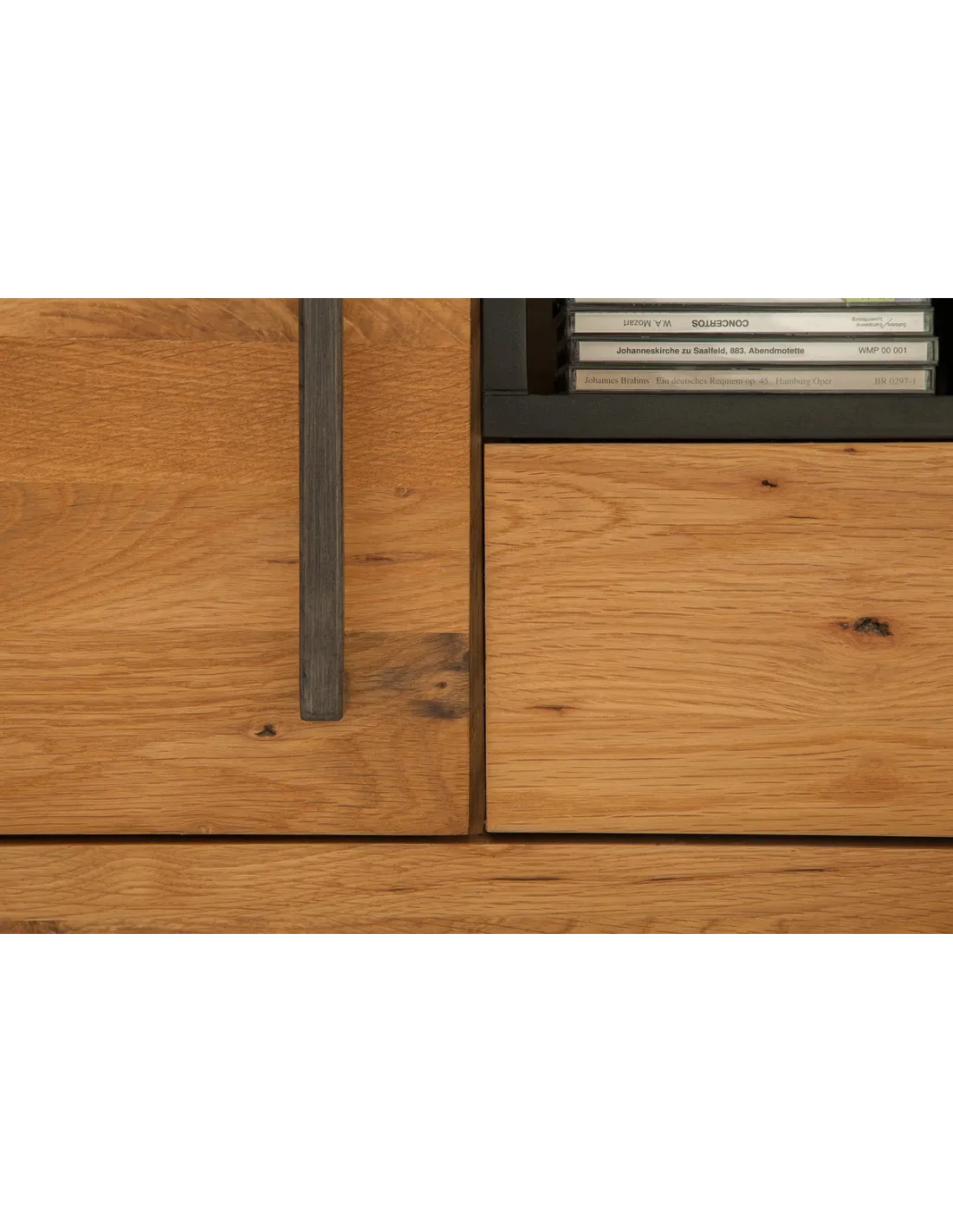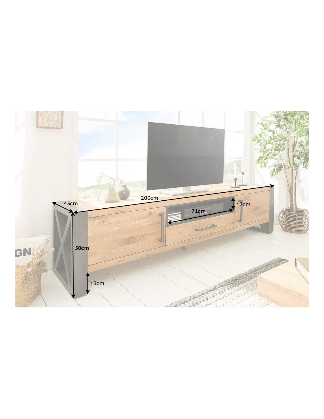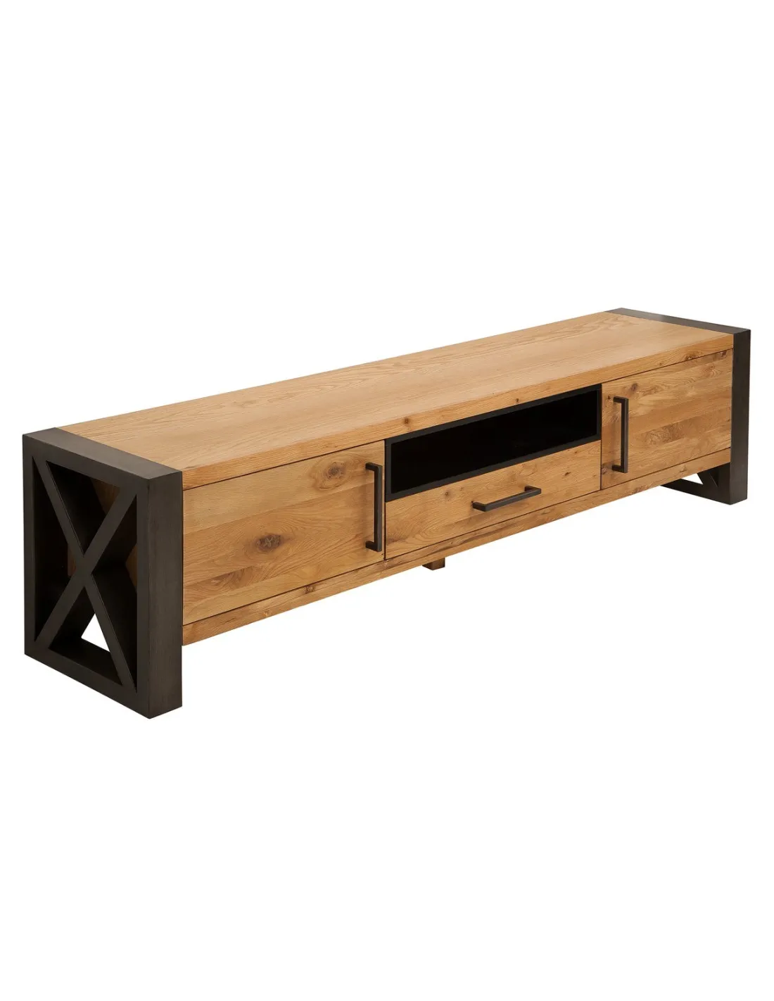 - Le bois massif de chêne sauvage confère une élégance naturelle à ce meuble TV.