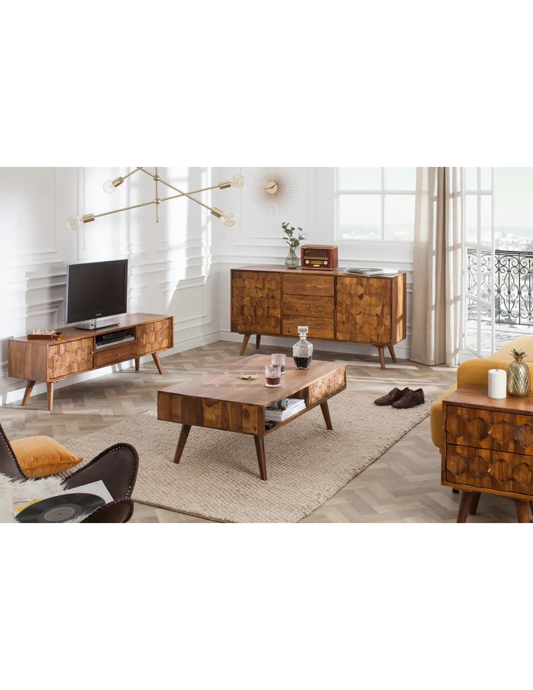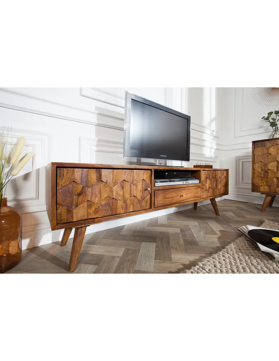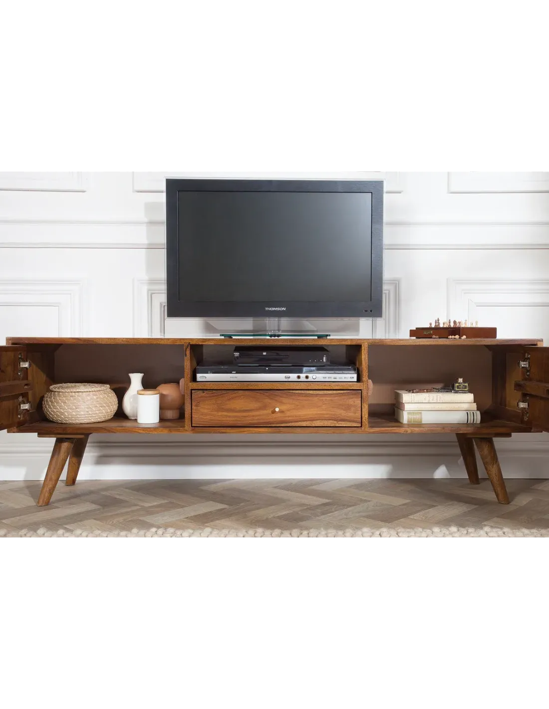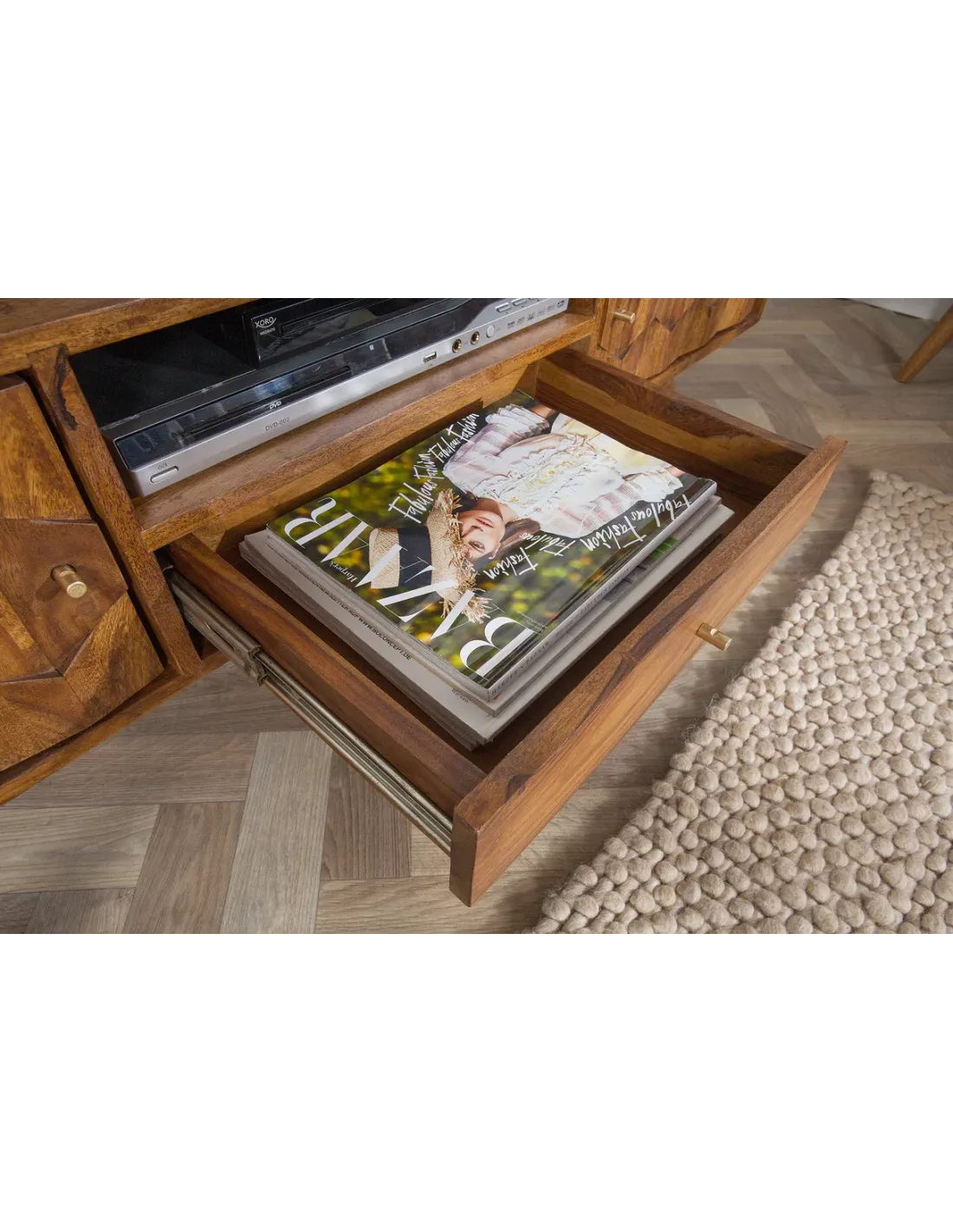 Meuble TV en Bois Massif Sheesham - Style Naturel