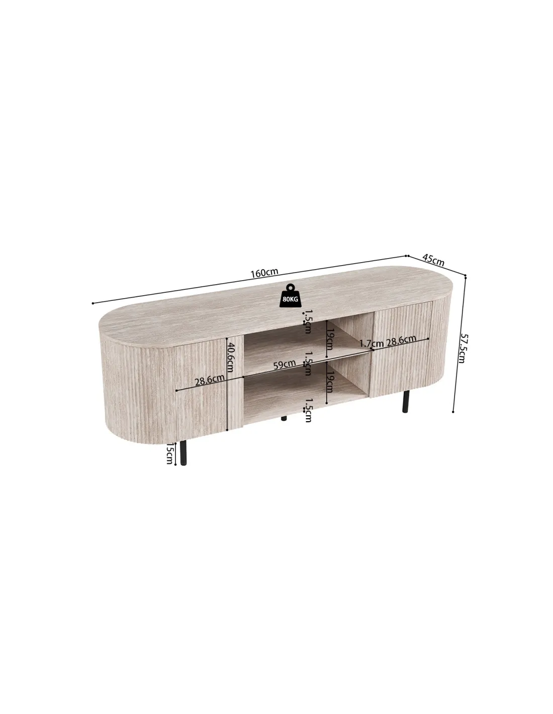 Dimensions : H 57,5 × L 160 × P 45 cm