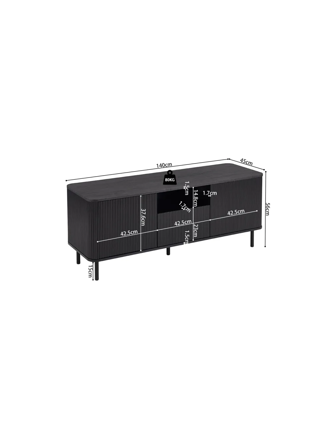 - Dimensions (environ) : H 56 cm x L 140 cm x P 45 cm