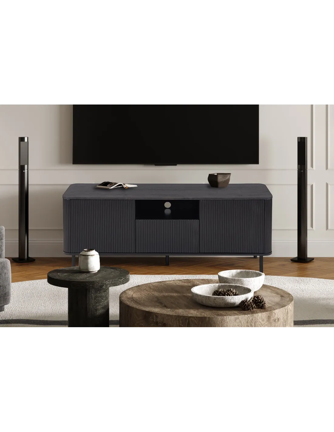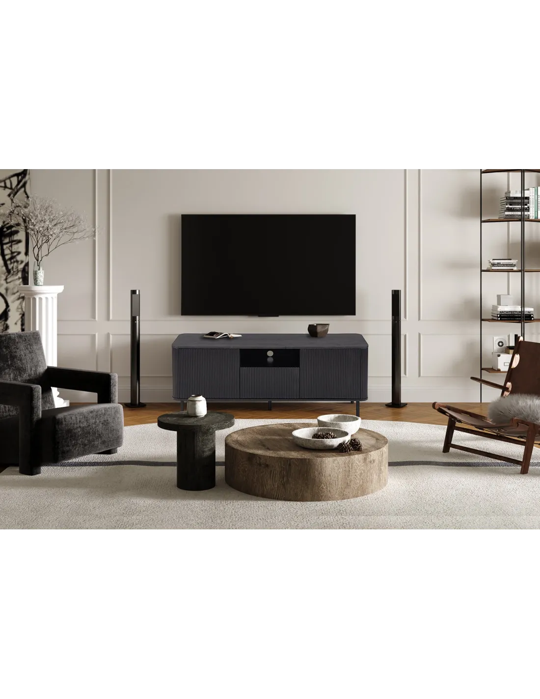 - 1 niche ouverte : Parfaite pour vos appareils multimédias tels que décodeurs, consoles de jeux ou lecteurs DVD, avec une gestion des câbles discrète.