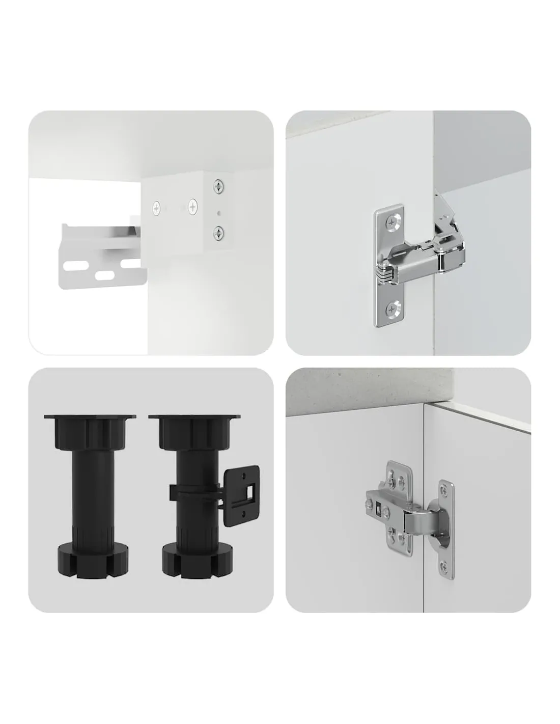 Cet ensemble de meubles de cuisine de 11 pièces, au design élégant, optimise votre espace de cuisine et offre un espace de rangement suffisant pour vos effets personnels ! Matériau stable et durable : le bois d'ingénierie est un matériau durable et stable dont la surface lisse résiste à l'humidité, à la déformation et au fendillement, ce qui en fait un choix fiable pour une grande variété de projets.Grand espace de rangement : l'ensemble d'armoires de cuisine comporte de nombreux compartiments et offre suffisamment d'espace pour ranger bols, assiettes, casseroles et autres appareils de cuisine.Pieds réglables : Les armoires inférieures sont dotées de pieds réglables qui peuvent être ajustés en hauteur pour s'adapter à l'agencement de votre cuisine.Facile à entretenir : grâce à leur surface lisse, ces armoires de cuisine sont faciles à nettoyer avec un chiffon humide et nécessitent moins d'entretien. Attention :Pour éviter qu'il ne bascule, ce produit doit être utilisé avec le dispositif de fixation murale fourni. Bon à savoir :Les vis et les chevilles pour l'intérieur du mur ne sont pas incluses. Recherchez et utilisez des vis et des chevilles adaptées à vos murs. Si vous n'êtes pas sûr, demandez conseil à un professionnel. Lisez et suivez attentivement chaque étape des instructions.Le plan de travail, l'évier et le robinet ne sont pas inclus dans la livraison.