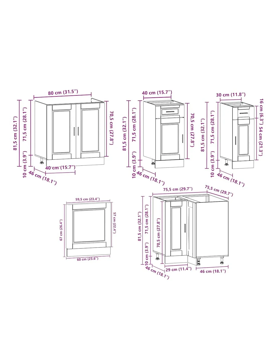 Ensemble d'armoires de cuisine 11 pcs Porto bois d'ingénierie