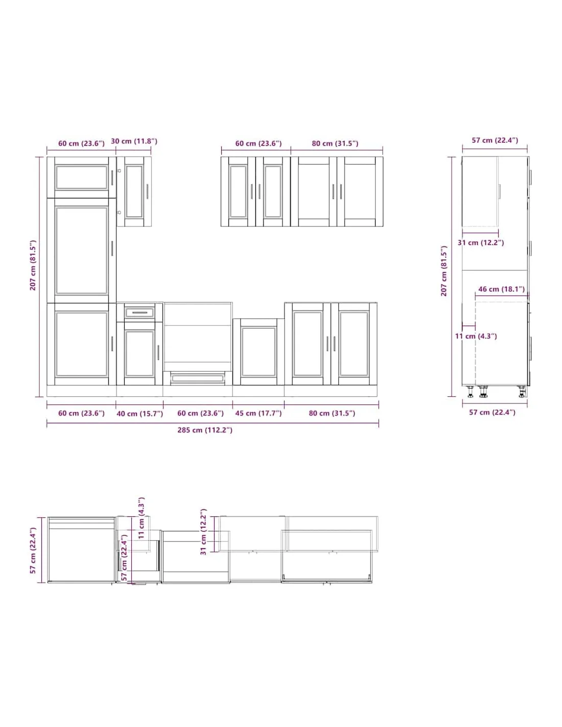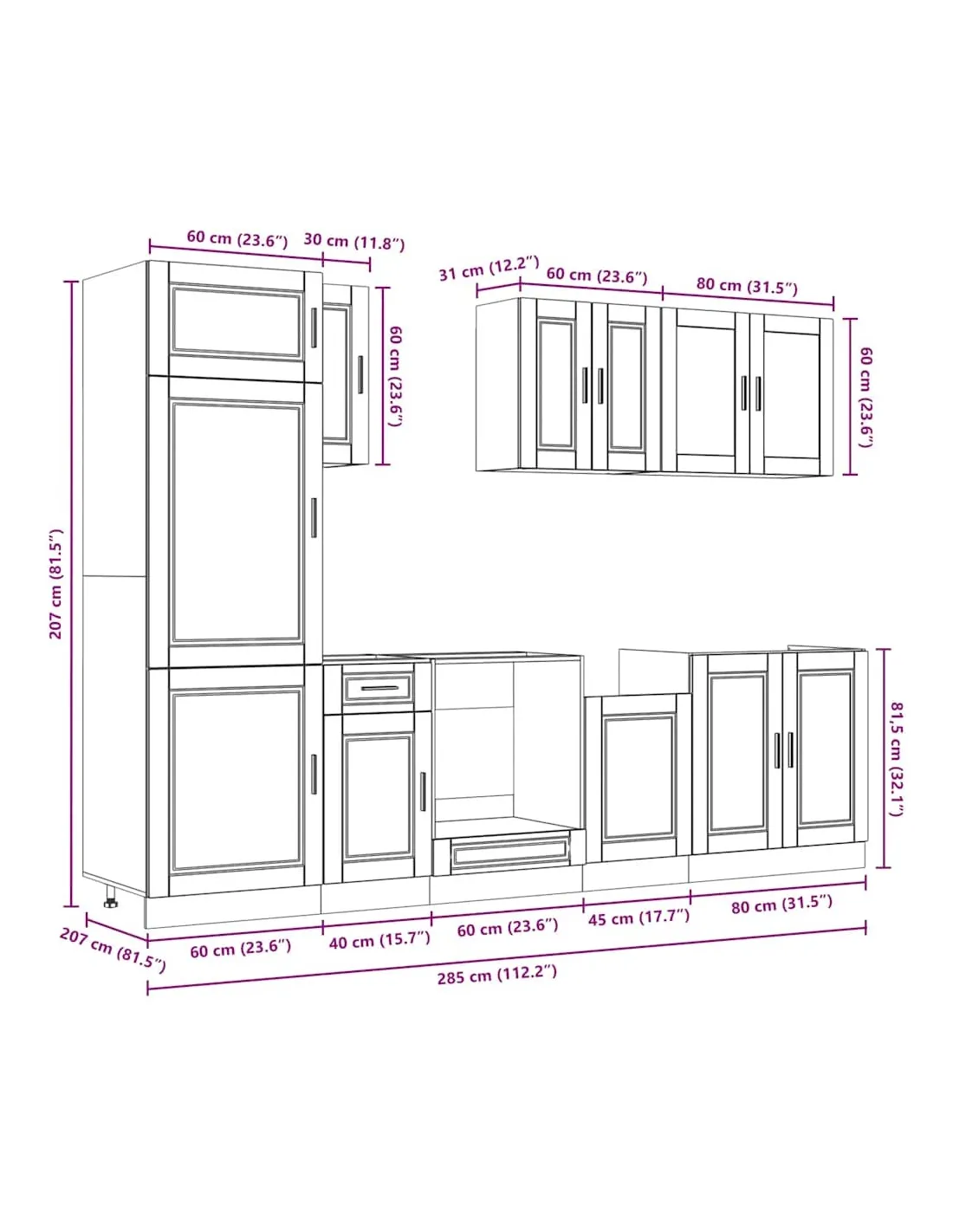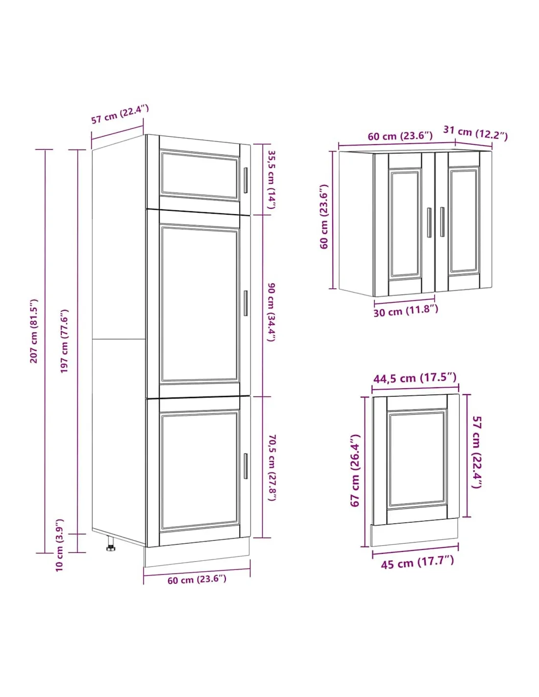 - 1 x armoire à four : 60 x 46 x 81,5 cm (l x P x H)
