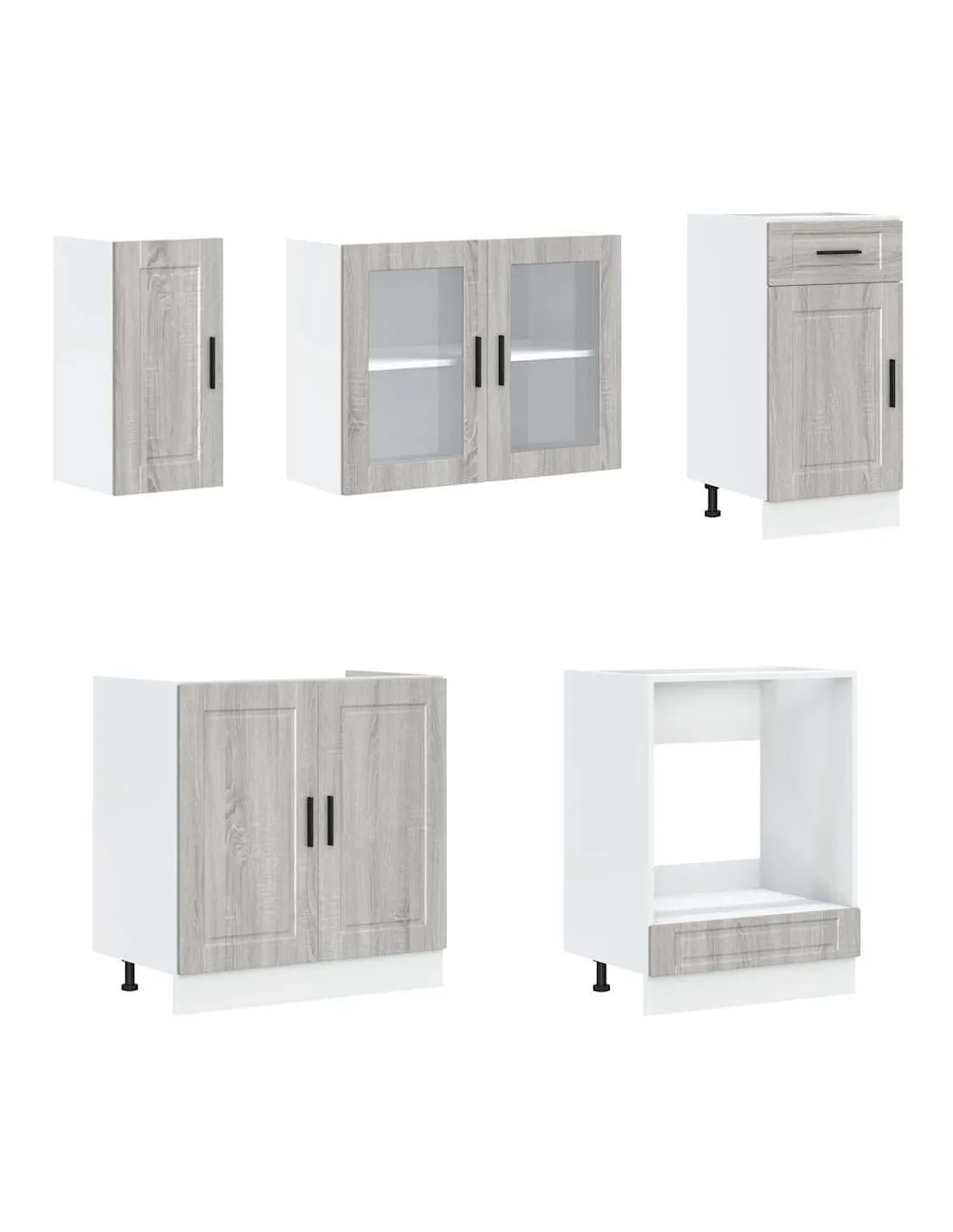 Cet ensemble de meubles de cuisine de 8 pièces, au design élégant, optimise votre espace de cuisine et offre un espace de rangement suffisant pour vos effets personnels ! Matériau stable et durable : le bois d'ingénierie est un matériau durable et stable dont la surface lisse résiste à l'humidité, à la déformation et au fendillement, ce qui en fait un choix fiable pour une grande variété de projets.Grand espace de rangement : l'ensemble d'armoires de cuisine comporte de nombreux compartiments et offre suffisamment d'espace pour ranger bols, assiettes, casseroles et autres appareils de cuisine.Pieds réglables : Les armoires inférieures sont dotées de pieds réglables qui peuvent être ajustés en hauteur pour s'adapter à l'agencement de votre cuisine.Facile à entretenir : grâce à leur surface lisse, ces armoires de cuisine sont faciles à nettoyer avec un chiffon humide et nécessitent moins d'entretien. Attention :Pour éviter qu'il ne bascule, ce produit doit être utilisé avec le dispositif de fixation murale fourni. Bon à savoir :Les vis et les chevilles pour l'intérieur du mur ne sont pas incluses. Recherchez et utilisez des vis et des chevilles adaptées à vos murs. Si vous n'êtes pas sûr, demandez conseil à un professionnel. Lisez et suivez attentivement chaque étape des instructions.Le plan de travail, l'évier et le robinet ne sont pas inclus dans la livraison.