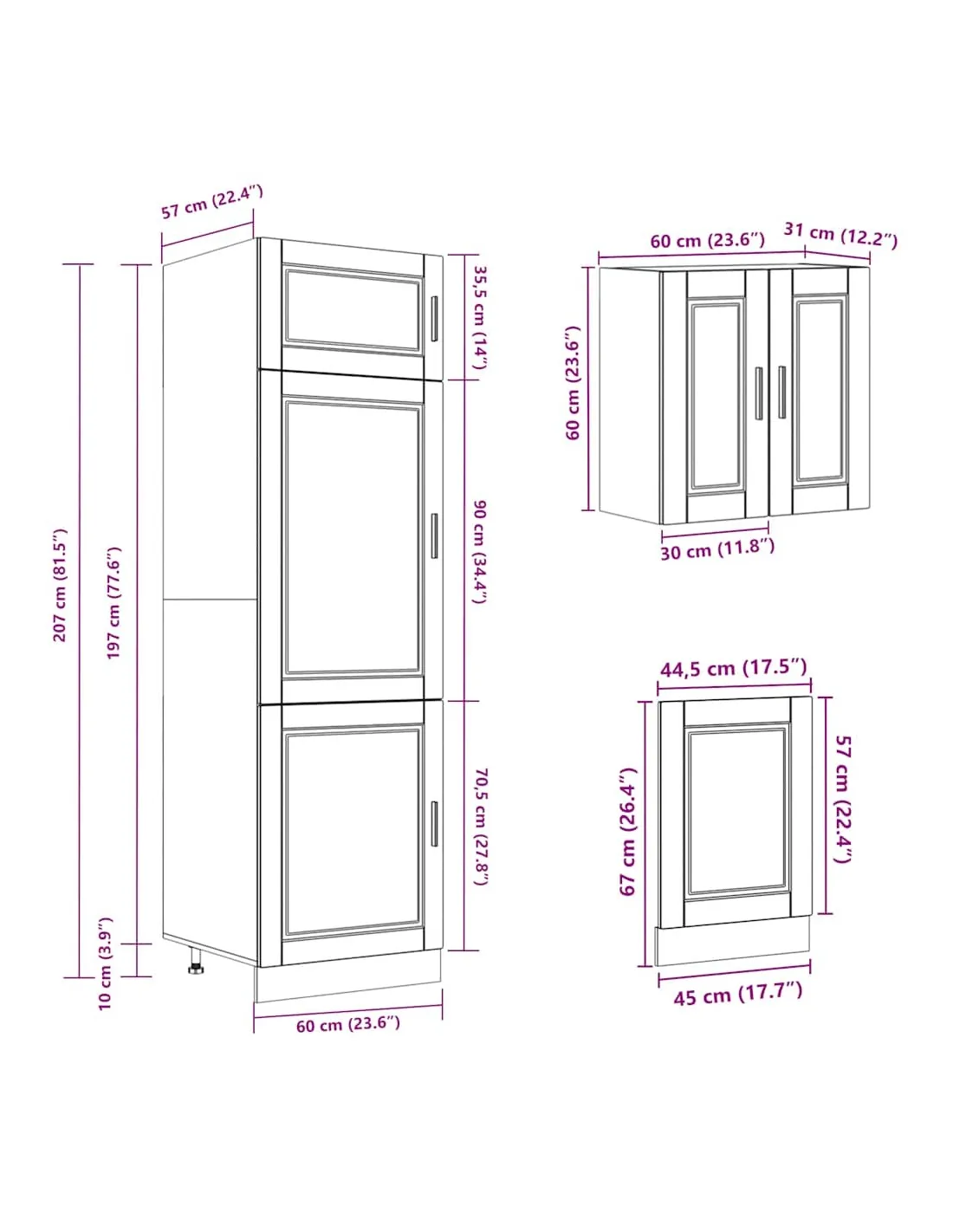 - 1 x armoire à four : 60 x 46 x 81,5 cm (l x P x H)