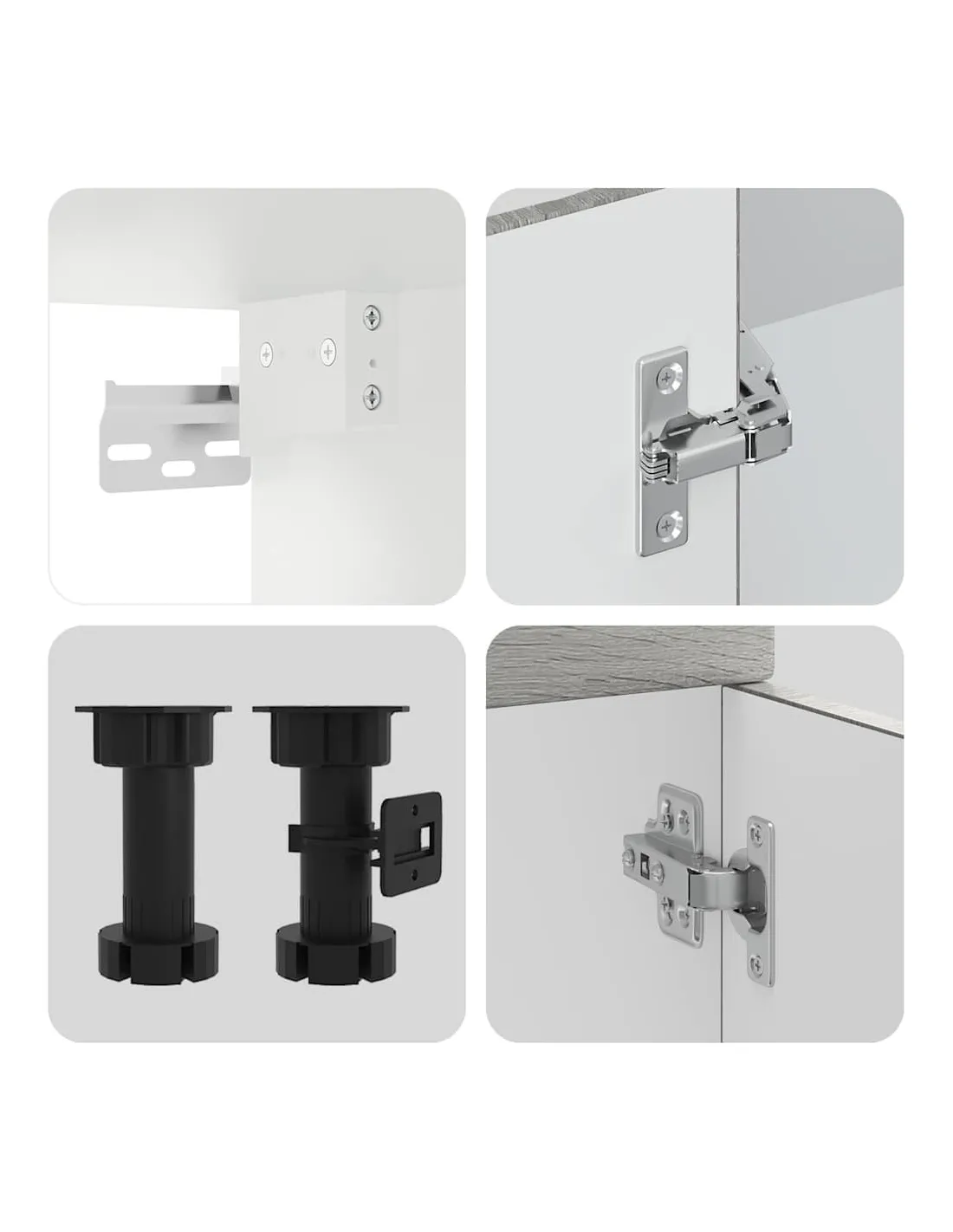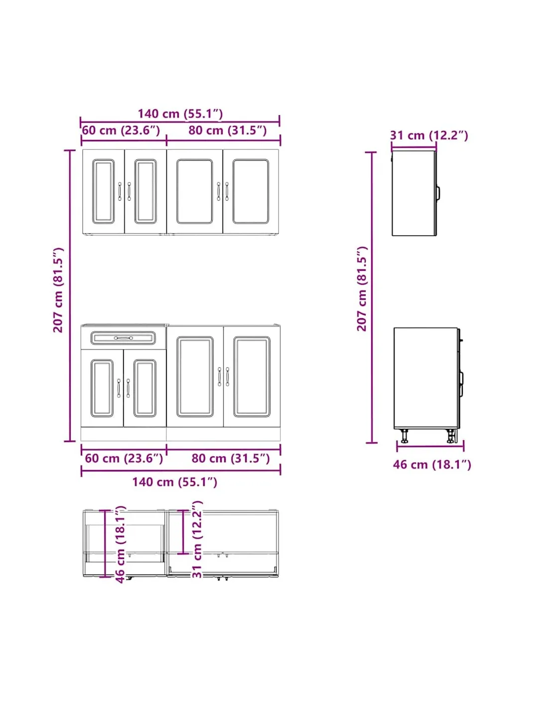 Cet ensemble de meubles de cuisine de 4 pièces, au design élégant, optimise votre espace de cuisine et offre un espace de rangement suffisant pour vos effets personnels ! Matériau stable et durable : le bois d'ingénierie est un matériau durable et stable dont la surface lisse résiste à l'humidité, à la déformation et au fendillement, ce qui en fait un choix fiable pour une grande variété de projets.Grand espace de rangement : l'ensemble d'armoires de cuisine comporte de nombreux compartiments et offre suffisamment d'espace pour ranger bols, assiettes, casseroles et autres appareils de cuisine.Pieds réglables : Les armoires inférieures sont dotées de pieds réglables qui peuvent être ajustés en hauteur pour s'adapter à l'agencement de votre cuisine.Facile à entretenir : grâce à leur surface lisse, ces armoires de cuisine sont faciles à nettoyer avec un chiffon humide et nécessitent moins d'entretien. Attention :Pour éviter qu'il ne bascule, ce produit doit être utilisé avec le dispositif de fixation murale fourni. Bon à savoir :Les vis et les chevilles pour l'intérieur du mur ne sont pas incluses. Recherchez et utilisez des vis et des chevilles adaptées à vos murs. Si vous n'êtes pas sûr, demandez conseil à un professionnel. Lisez et suivez attentivement chaque étape des instructions.Le plan de travail, l'évier et le robinet ne sont pas inclus dans la livraison.