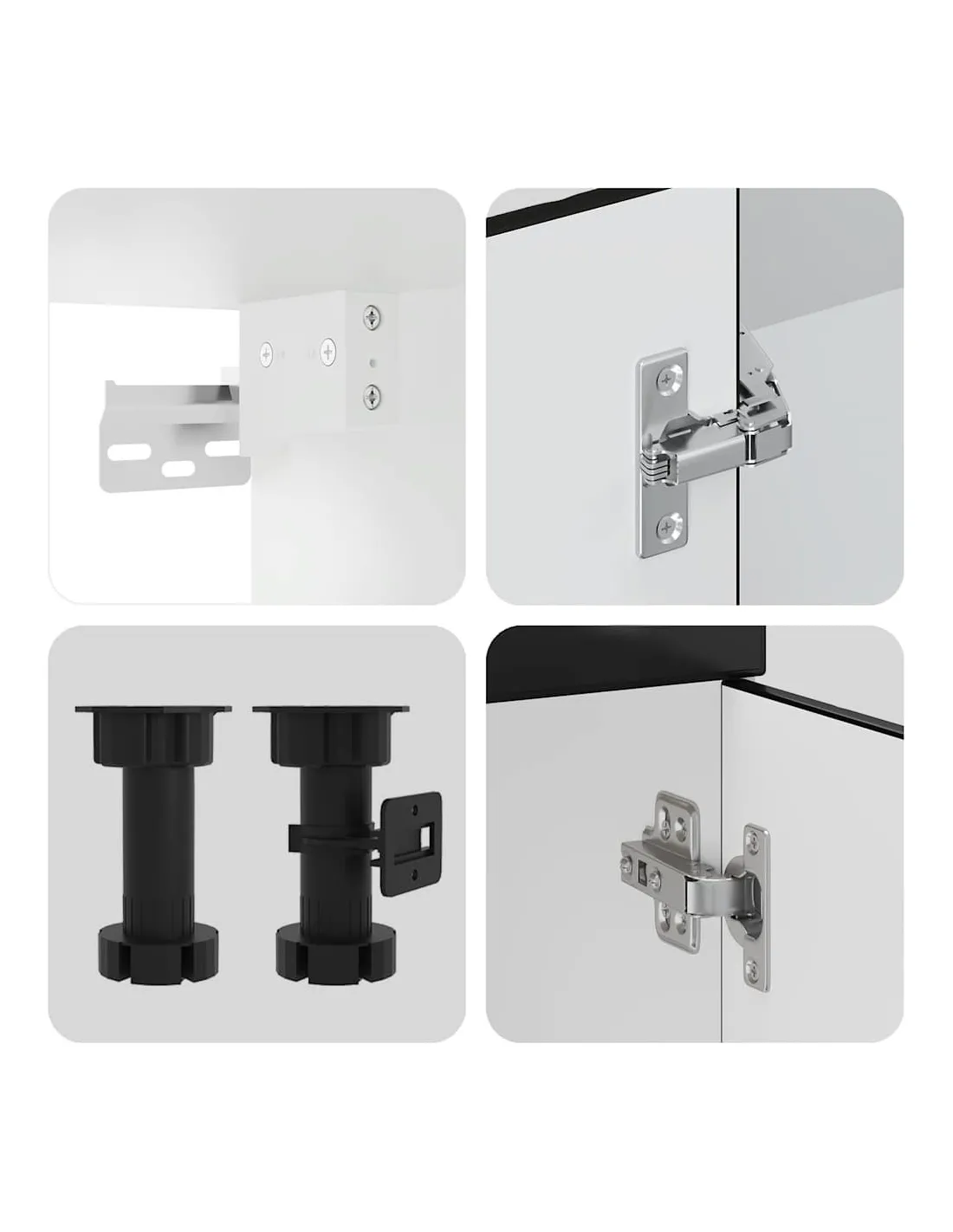 Cet ensemble de meubles de cuisine de 8 pièces, au design élégant, optimise votre espace de cuisine et offre un espace de rangement suffisant pour vos effets personnels ! Matériau stable et durable : le bois d'ingénierie est un matériau durable et stable dont la surface lisse résiste à l'humidité, à la déformation et au fendillement, ce qui en fait un choix fiable pour une grande variété de projets.Grand espace de rangement : l'ensemble d'armoires de cuisine comporte de nombreux compartiments et offre suffisamment d'espace pour ranger bols, assiettes, casseroles et autres appareils de cuisine.Pieds réglables : Les armoires inférieures sont dotées de pieds réglables qui peuvent être ajustés en hauteur pour s'adapter à l'agencement de votre cuisine.Facile à entretenir : grâce à leur surface lisse, ces armoires de cuisine sont faciles à nettoyer avec un chiffon humide et nécessitent moins d'entretien. Attention :Pour éviter qu'il ne bascule, ce produit doit être utilisé avec le dispositif de fixation murale fourni. Bon à savoir :Les vis et les chevilles pour l'intérieur du mur ne sont pas incluses. Recherchez et utilisez des vis et des chevilles adaptées à vos murs. Si vous n'êtes pas sûr, demandez conseil à un professionnel. Lisez et suivez attentivement chaque étape des instructions.Le plan de travail, l'évier et le robinet ne sont pas inclus dans la livraison.